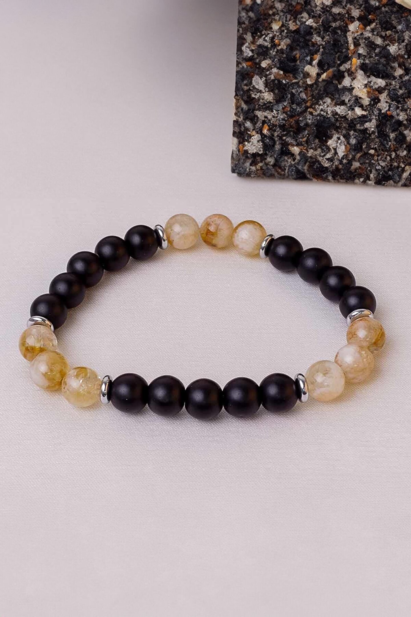 Doğal taş kullanımı sayesinde her bileklik benzersiz ve otantik bir görünüm sunar; Sitrin ve oniks taşı kombinasyonu, şıklığı ve zarafeti bir arada barındırır; Doğal taş materyali ile hem dayanıklılık hem de estetik bir dokunuş sağlar; Her bileklik, el yapımı olmasıyla dikkat çeker ve kişisel bir dokunuşla tamamlanır;