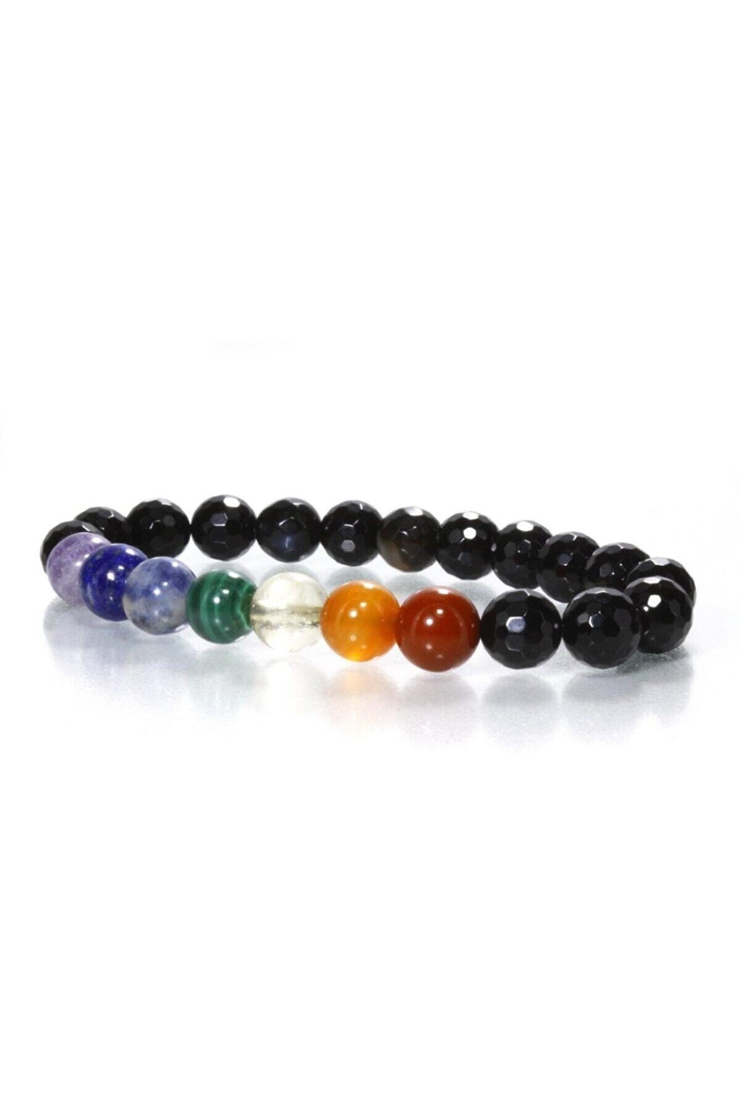 Siyah Akik Doğal Taş Çakra Bileklik Dünyanın en ünlü taşlarından Akik ve Çakra taşları bir araya geldi, Çakra Doğal Taş Bileklik için yepyeni bir tarz dizayn etti.; Akik taşına Çakra Doğal Taş Bileklikte 7 Farklı Çakrayı temsilen 7 Farklı Renkte Doğal Taş eşlik etti.; Şifa, arınma, aura ve çakra temizliği için kullanabileceğiniz Kuvars Doğal Taş Çakra Bileklik sizlerin beğenisine sunuldu.; Bileklik tane ebatları 8 mm'dir.; Kök Çakra - Kırmızı - Jasper ; Mide Çakra - Turuncu - Akik ; Sinir Ağı Çakrası - Sarı - Sitrin ; Kalp Çakrası - Yeşil - Malakit ; Boğaz Çakrası - Mavi - Sodalit ; Göz Çakrası - Lacivert - Lapis Lazuli ; Taç Çakra - Mor - Ametist ;