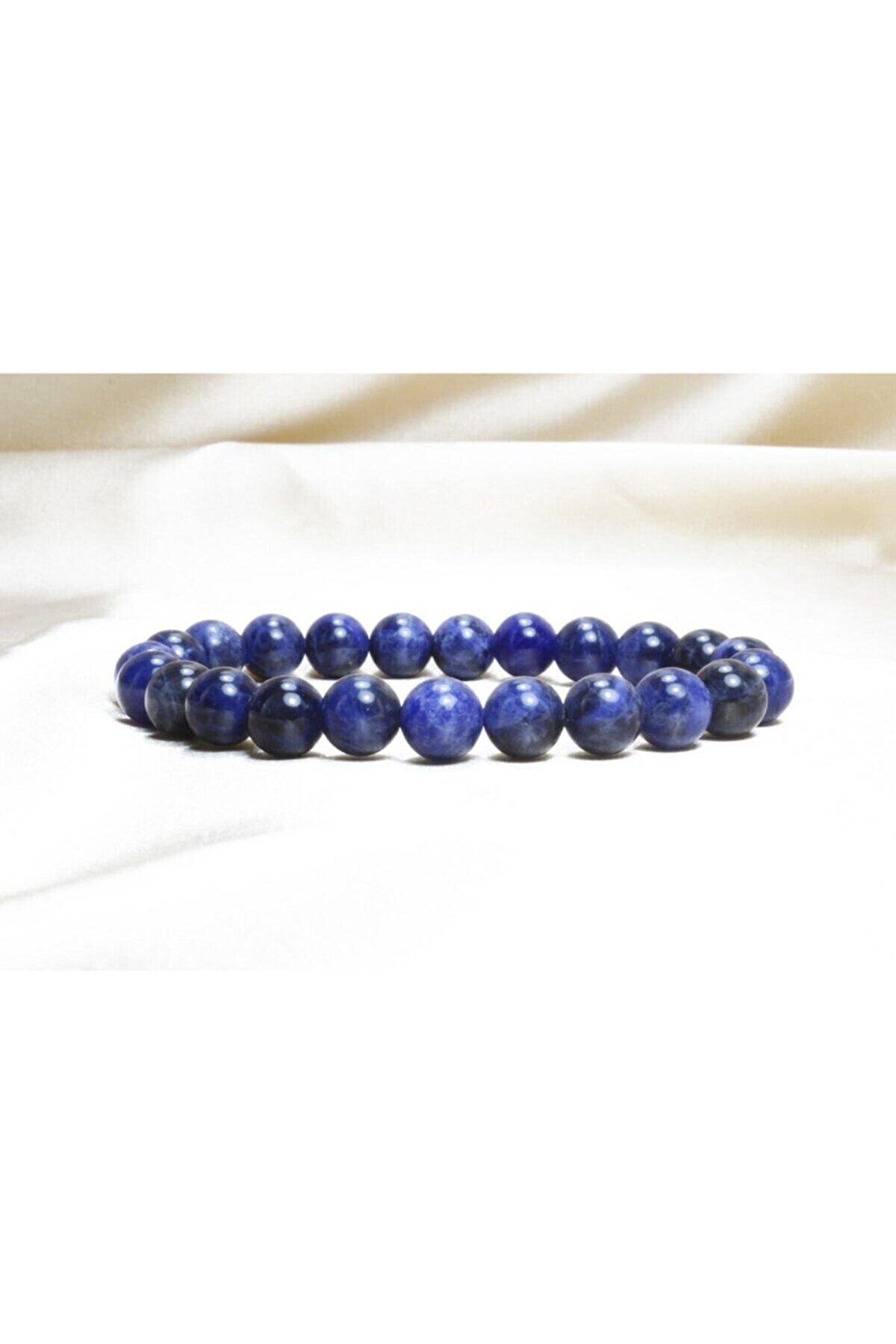 Doğal sodalit taşı kullanılarak üretilmiş, şık ve zarif bir aksesuar; Bileklik, 8 mm boyutunda doğal taşlarla süslenmiş olup, her parça benzersiz bir dokunuş sunar; Doğal taş materyali sayesinde, bileklik hem dayanıklı hem de estetik bir görünüm sağlar; Sodalit taşı bileklik, günlük kullanım için idealdir ve her türlü kıyafetle kolayca uyum sağlar;