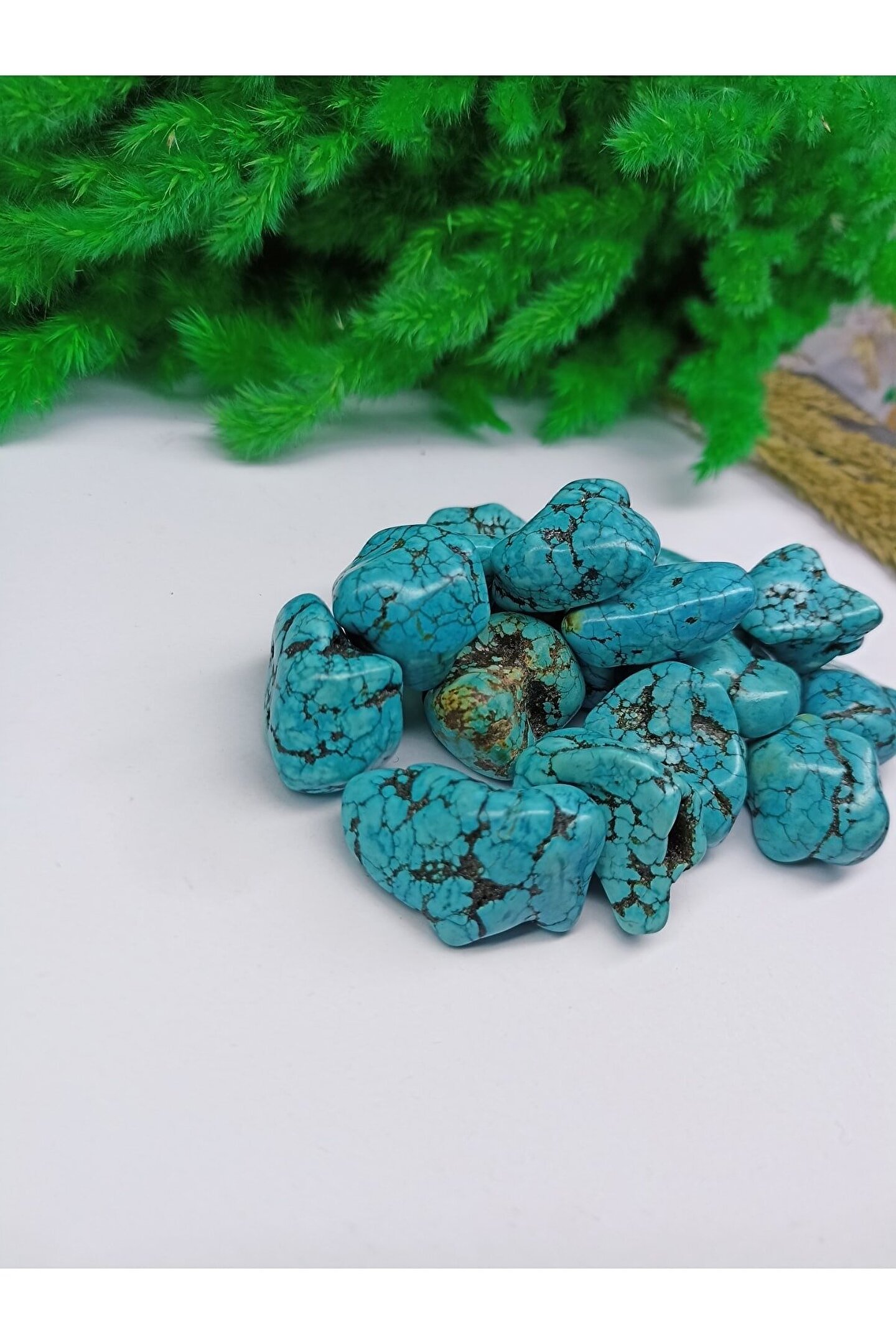 Doğal turkuaz firuze taşı, benzersiz ve otantik bir dekoratif obje arayanlar için ideal bir seçenektir; Sertifikalı yapısı ile kalite ve güvenilirlik sunar, değerli koleksiyon parçalarınız arasında yerini alır; Doğal taşların estetik güzelliğini evinizin her köşesine taşıyarak mekanınıza doğal bir dokunuş katar; Dekoratif obje olarak kullanılabileceği gibi, takı veya mücevher tasarımında da tercih edilebilir;