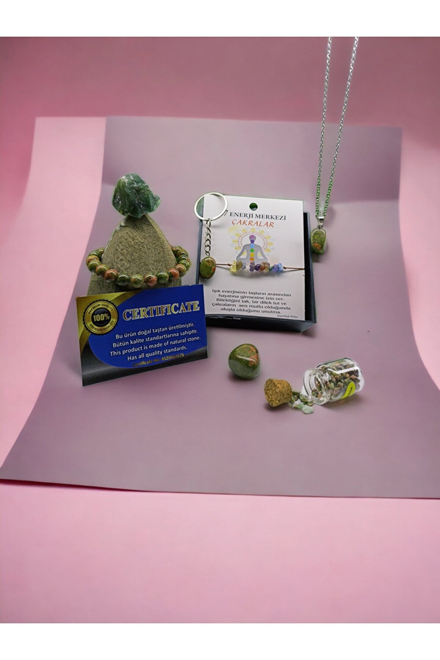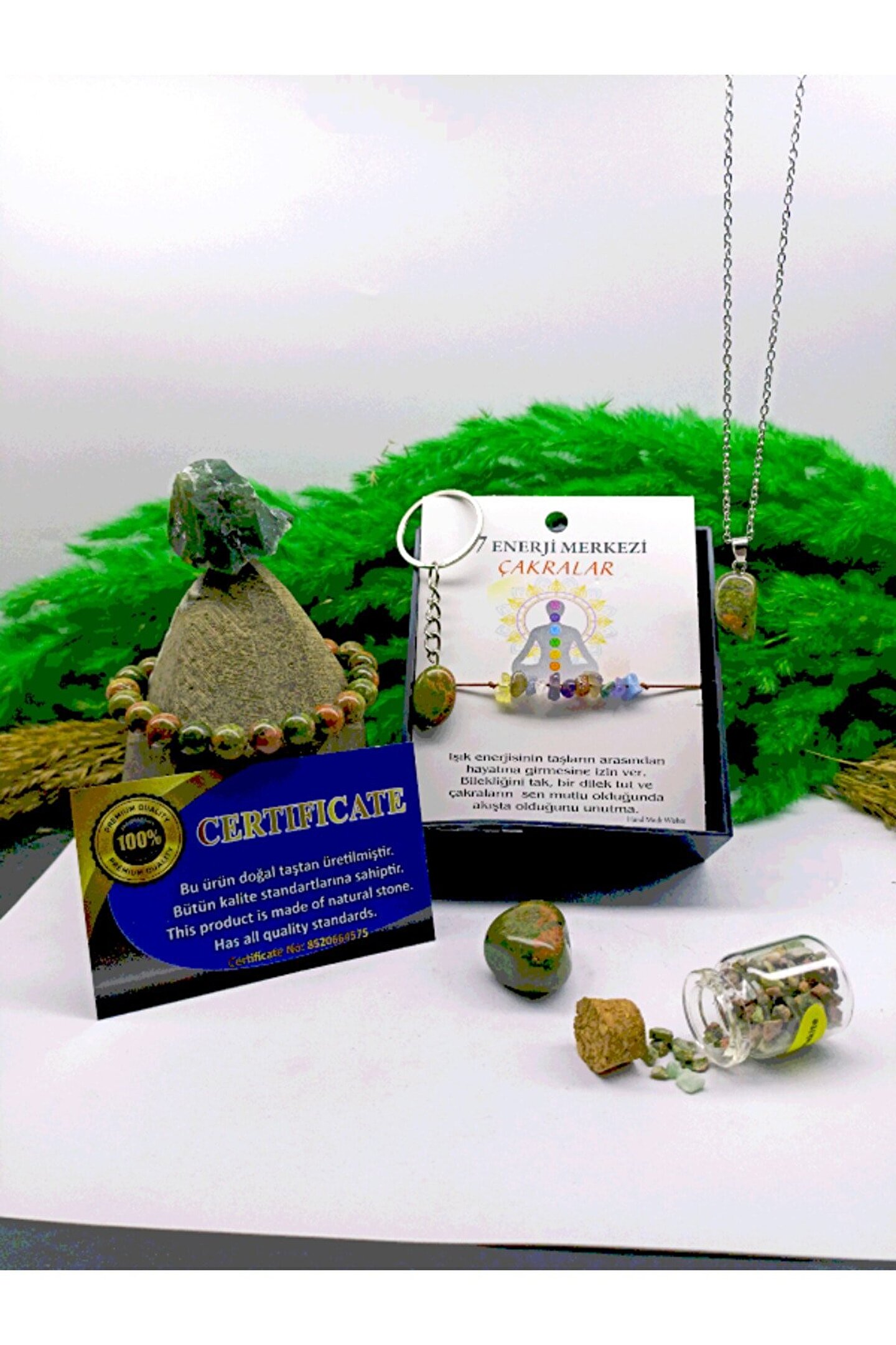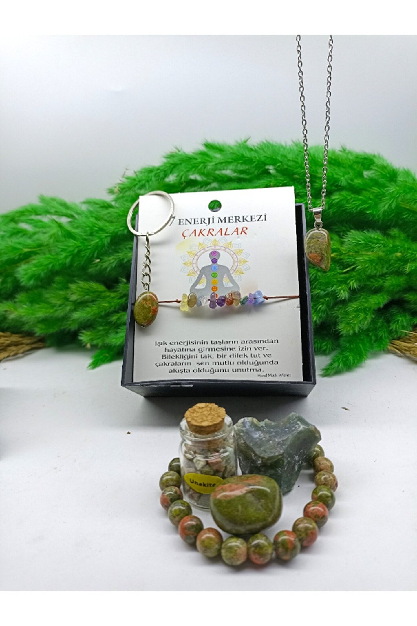 Topraklama taşıdır. bedensel fazla elektriği toprağa, toprağın yararlı enerjisini bedene aktarır. ; Üreme sistemlerinin tedavisinde kullanılır. ; Hamilelik, çocuk doğurma sürecinde çok etkilidir. ; Doğumu kolaylaştırır ; Rahimdeki bebeği korur. ; Erkek üreme sistemini aktive eder. ; Ruhsal ve psikolojik büyümeyi kısıtlayan koşulları ortadan kaldırır. ; İÇİNDEKİLER;1 ADET UNAKİT BİLEKLİK-1 ADET UNAKİT KAYA-1 ADET UNAKİT TIMBIL-1 ADET UNAKİT KOLYE UCU-1 ADET UNAKİT ANAHTARLIK-1 ADET HEDİYE ÇAKRA BİLEKLİK MAKREMELİ-1 ADET UNAKİT KIRIKTAŞ TÜP- ; ÜRÜN ÖZEL KUTUSUNDA VE BİR ADET HEDİYE KESE İLE GELİCEKTİR...;