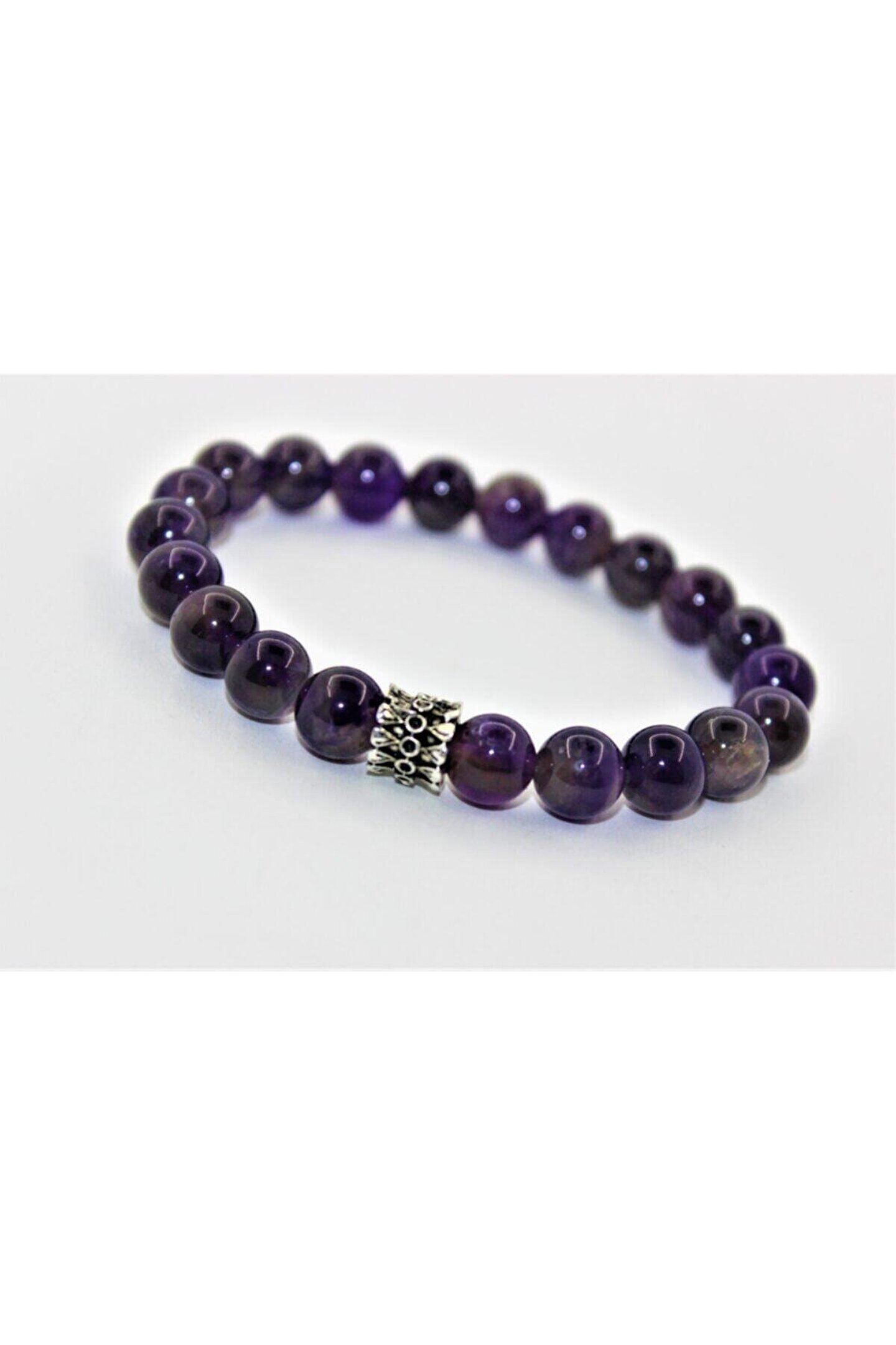 Ürün doğal taştır ; ürünün boyutu 8 mm dir ; ürün yuvarlak kesimdir ; ürün doğal taş olduğu için taşlarda renk farklılığı olabilir ; bilekliğimiz genelde 20-21cm arasındadır ; Değerli Doğal taşlardan oluşan bileklik tasarımlarımız tamamen el yapımı olup size eşsiz bir görüntü katacak.; ; Bileklikte değerli doğal taşlar kullanılmıştır.; ; Esnek yapısı ile her bileğe uyumludur.; ; Öncelikle ametist bir aşk ve sevgi taşıdır.; Çevresindeki enerjiyi sevgiye dönüştürür.; ; Negatif ve pozitif enerjinin farkındalığında olan insanlardansanız ve bu konuş sizin için önemli ise, inanıyoruz ki ametist taşı sizin için de önemli olarak.; Çünkü ametist bir negatif elektrik yükünü toplayıcısıdır.; Topladığı negatif enerjiyi de pozitif enerjiye dönüştürür ; Beyin gücünü yükseltici etkilere sahiptir.; ; Depresyonda mısınız? Hiç endişelenmeyin.; Ametist depresyona karşı da iyi gelmektedir.; ; Stresi azaltır, öfke gibi olumsuz hislerden sizi arındırır.; ; Şifa bakımından da oldukça güçlü taşlardan birisidir.; Cilt rahatsızlıklarına, alerjik, migren, baş ağrılarına ve kalp rahatsızlıkları gibi hayatımızı son derece olumsuz etkileyen hastalıklara karşı şifa sağlamaktadır.; Vücudunuzu zararlı toksinlerden arındırır ve sizleri daha sağlıklı bir hayata yönlendirir.; ; Benim gibi sizde uykusuzluktan yakınanlar sizler de buradaysanız, sizler içinde bu taş oldukça önemli bir yere sahip.; Uykudan önce bir müddet ametist taşını elinizde tutun ve yattığınız yastığın altına koyun ve yatın.; Faydasını göreceksiniz.; ; Enerjisi yüksek olan taşımız kişi üzerinde canlandırıcı bir etkisi bulunmaktadır.; ; Etrafımızda birçok art niyetli, olumsuz insan var.; Eğer onların kötü enerjilerinden ve nazarlarından korunmak istiyorsanız.; Ametist taşı sizin içinde biçilmiş kaftan.; ; Sinir sistemine, eklem ağrılarına iyi gelirken, dolaşım konusunda da yararlıdır.; ; Aklı güçlendirir, kalp dostudur.; ; Kişilere iç huzur verir.; Meditasyon için oldukça etkilidir.; ; Kararsız biri iseniz yine ametisti seçebilirsiniz.; Sizi kararsızlıktan kurtarır ve kararlarımızı netleştirmeniz konusunda enerjisi ile yardımcı olur.; ; Tendeki hücrelerin yenilenmesini sağladığı ve bu nedenle de teni güzelleşen insanların var olduğu bilinmektedir.; ; Kanser günümüzün önemli bir hastalığı.; Sizi ona karşı koruduğunu ve kanser oluşumunu engellediği bilinmektedir.; ; Bağışıklık sisteminizin de güçlenmesi konusunda sizlere yardımcı olacaktır.; ; Sezgilerinizi açar, 6. Hissiniz kuvvetlendirir.; Ama bunun için ametisti alınınız da kullanmanız son derece önemlidir.; ; Alkol, sigara gibi zararlı şeylere bağımlılığınız var ise, ametistin bağımlılıkların giderilmesi konusunda da yardım olduğu bilinmektedir.; ; Göz sağlığı açısından da yararı bulunmaktadır.; ;