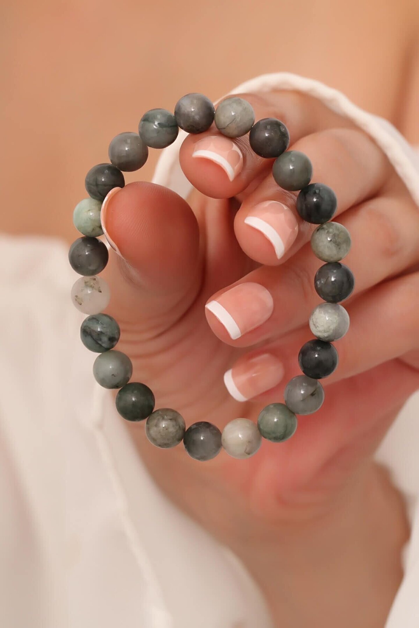 Doğal zümrüt taşı kullanılarak üretilmiş, doğanın zarifliğini bileğinizde taşıyın; Her bir bileklik, benzersiz ve otantik bir görünüm sunan doğal taş materyalden yapılmıştır; Zümrüt taşı, bilekliğinize sofistike bir dokunuş katarken, şıklığınızı ön plana çıkarır; Doğal taş kullanımı sayesinde her bileklik, eşsiz ve özgün bir parça olarak öne çıkar;