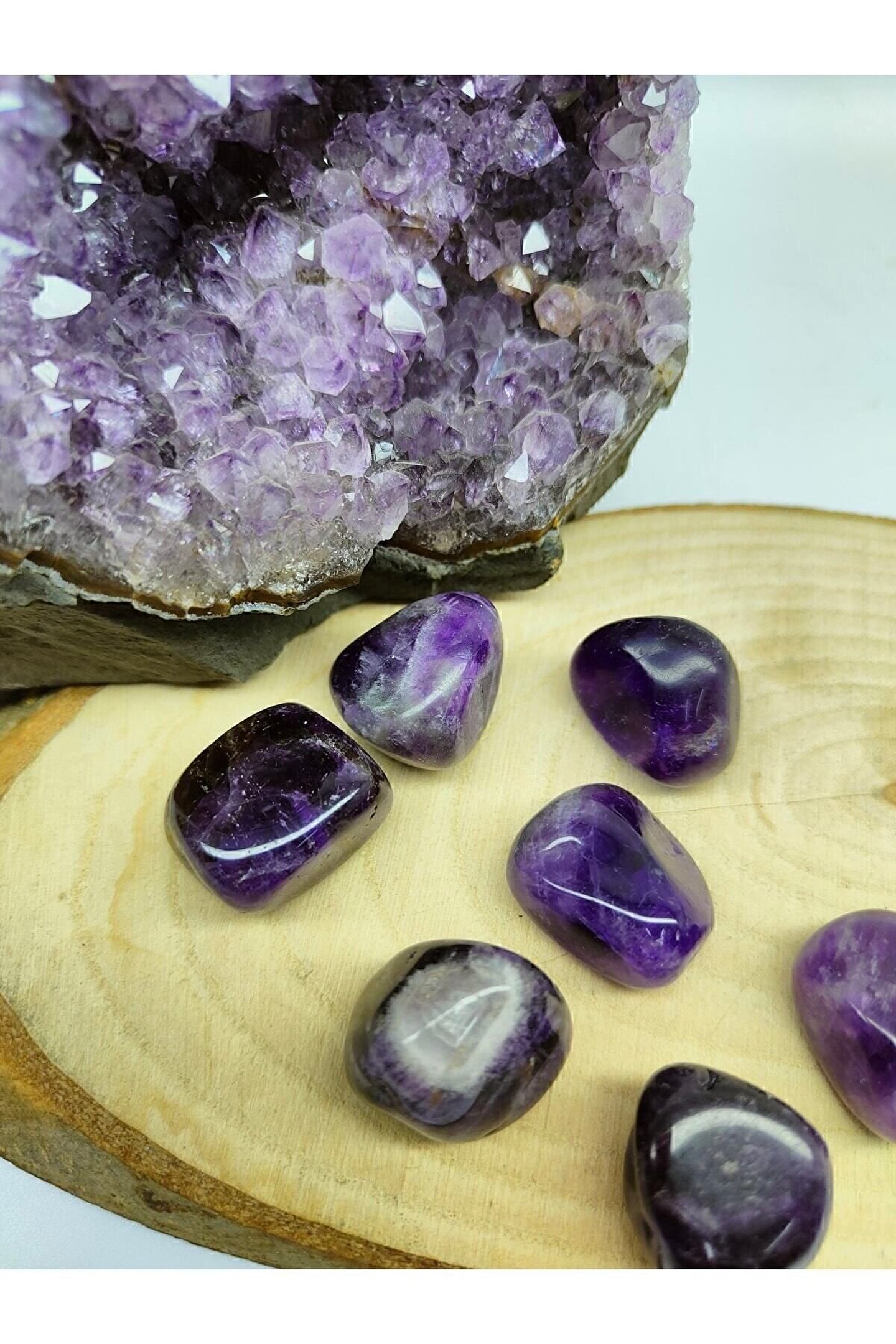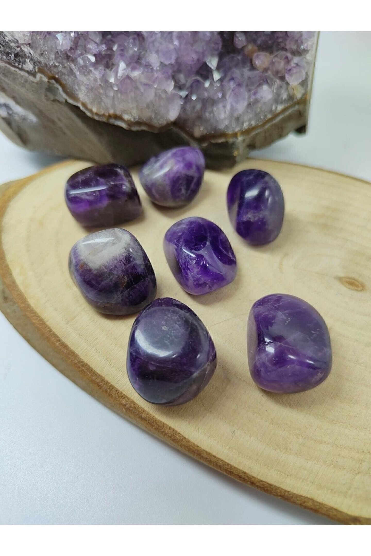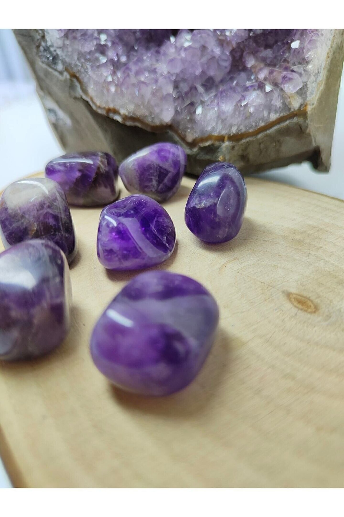 Ürün doğal taş olduğu için renk ve boyutlar küçük farklılıklar gösterebilir.; Doğal Ametist taşı, her bir parça benzersiz ve eşsiz bir görünüm sunar; Doğa severler için ideal bir dekoratif obje olan bu tımbıl, evinizin veya ofisinizin atmosferini doğal bir dokunuşla zenginleştirir; Tek parça halinde gelen bu ürün, minimalist ve sade tasarımıyla dikkat çeker;
