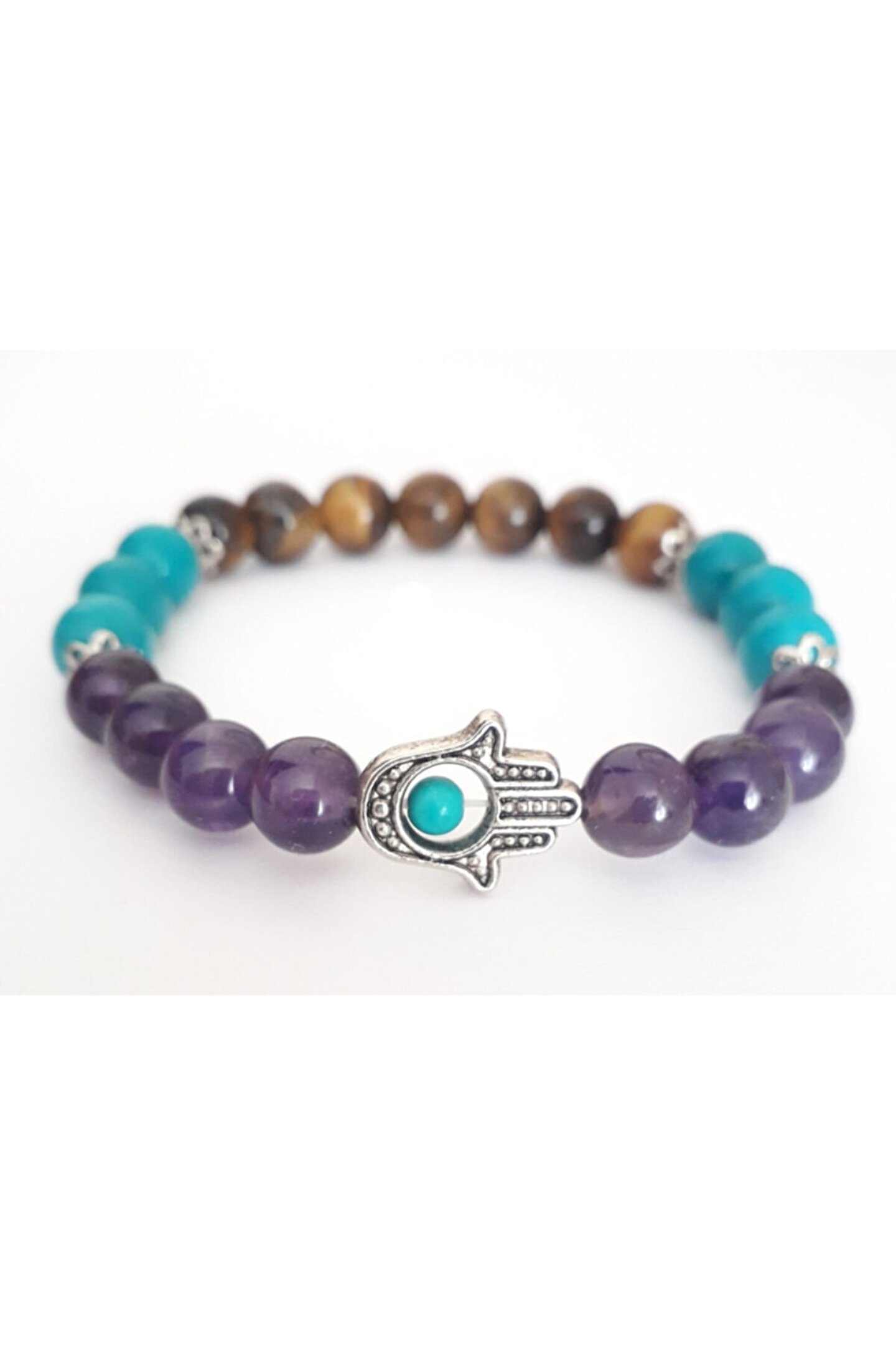 Ametist, turkuaz ve kaplangözü taşlarından güzel bilekliğimiz...