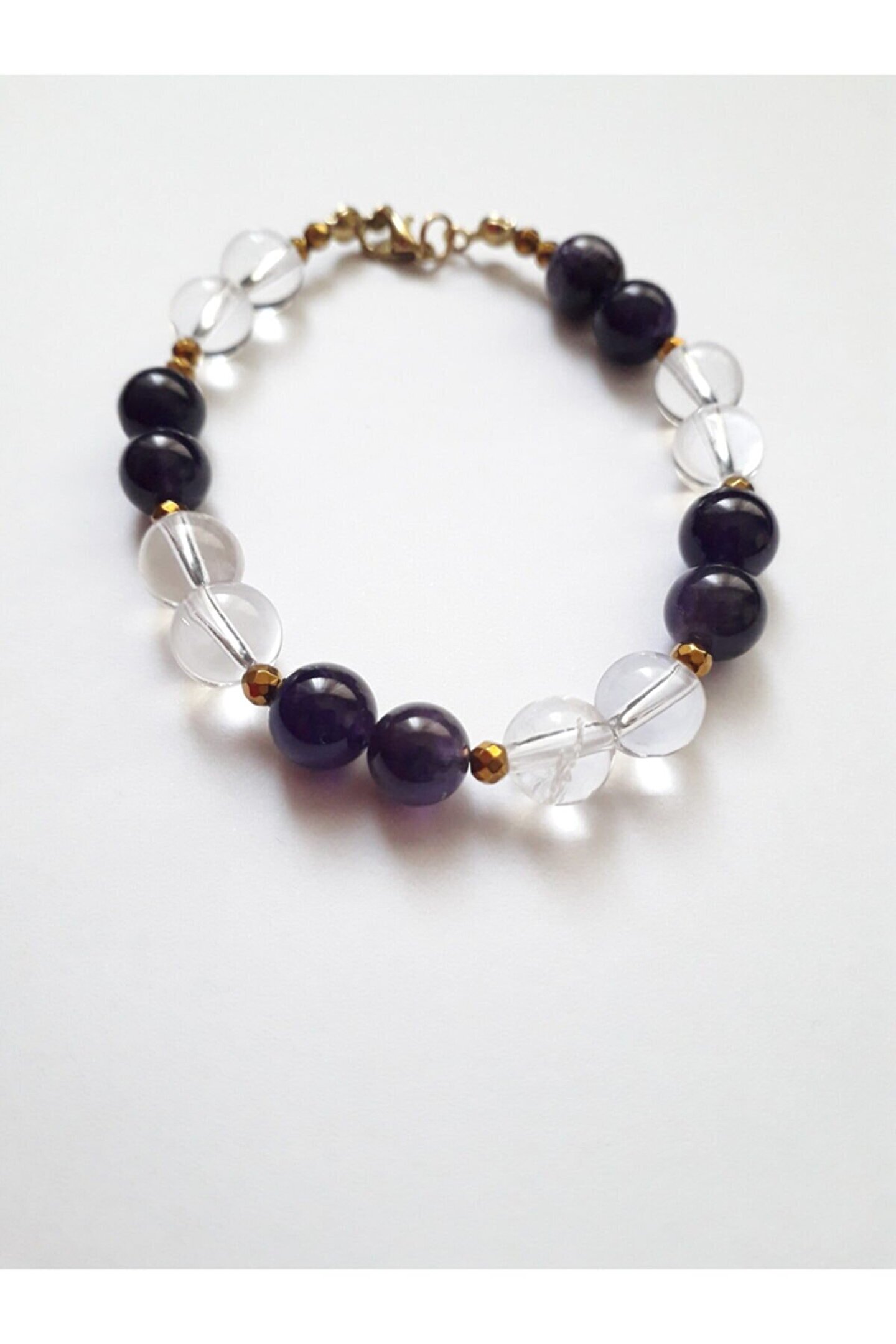 Doğal taş kullanımı sayesinde, her bileklik benzersiz ve otantik bir görünüm sunar; Ametist ve kristal kuvars gibi değerli taşlar, bilekliğe şık bir parlaklık ve zarif bir dokunuş katar; Doğal taş materyali ile hem estetik hem de sağlığa faydalı bir aksesuar deneyimi sağlar;