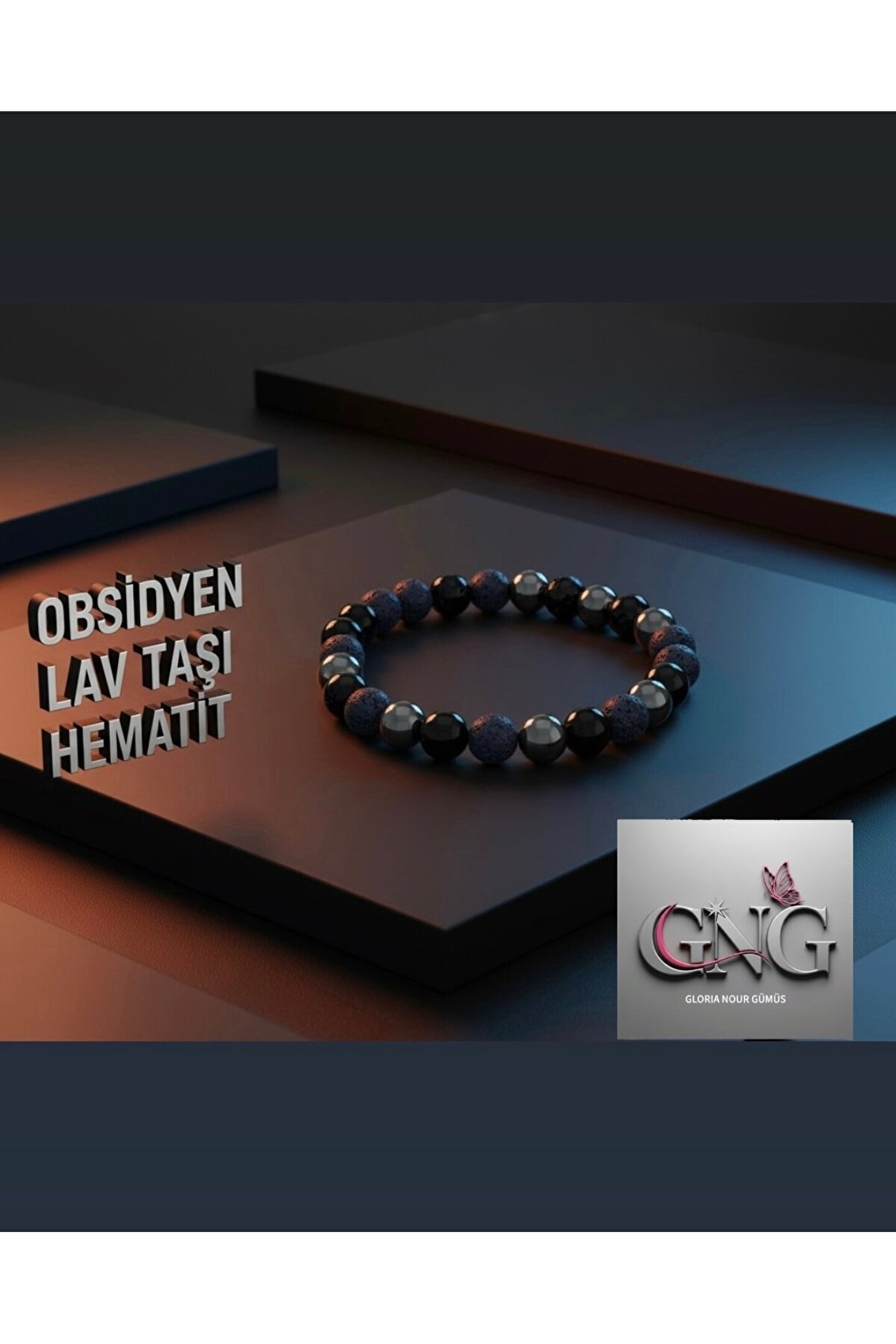 Hediye kutusunda gönderilir.; 8 mm doğal taştan üretilmiş.; Taş dizilimi sıralıdır 1havlit-1hematit-1obsidyen.; dizilimde gönderim sağlanır özel tasarım erkek bileklik Hematit ,Obsidyen ve Lav taşı Erkekler için özel olarak tasarlandı.; Doğal taşların faydası Topraktan bedeninize gelir herbiri özel faydalar taşır.