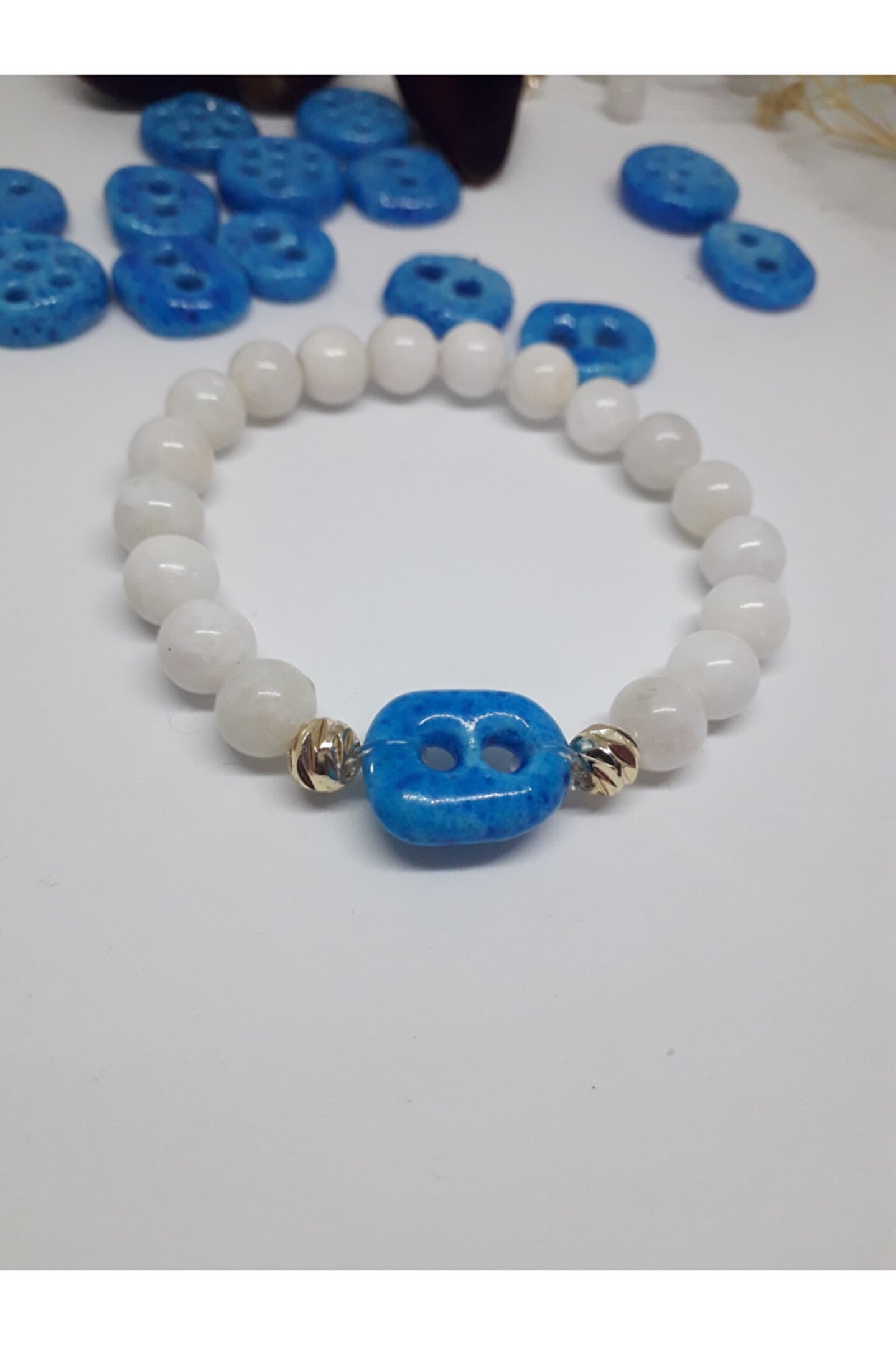 - Doğal taş kullanımı sayesinde her bileklik benzersiz ve otantik bir görünüm sunar; - Aytaşı taşı, bileklikte zarif bir dokunuş yaparak şıklığınızı tamamlar; - 6 mm kalınlığındaki tasarım, rahat bir kullanım sağlar ve bileğinizde ağırlık yapmaz; - Suryani nazar taşı aparatı ile zenginleştirilmiş bu bileklik, hem estetik hem de koruyucu bir özellik sunar;