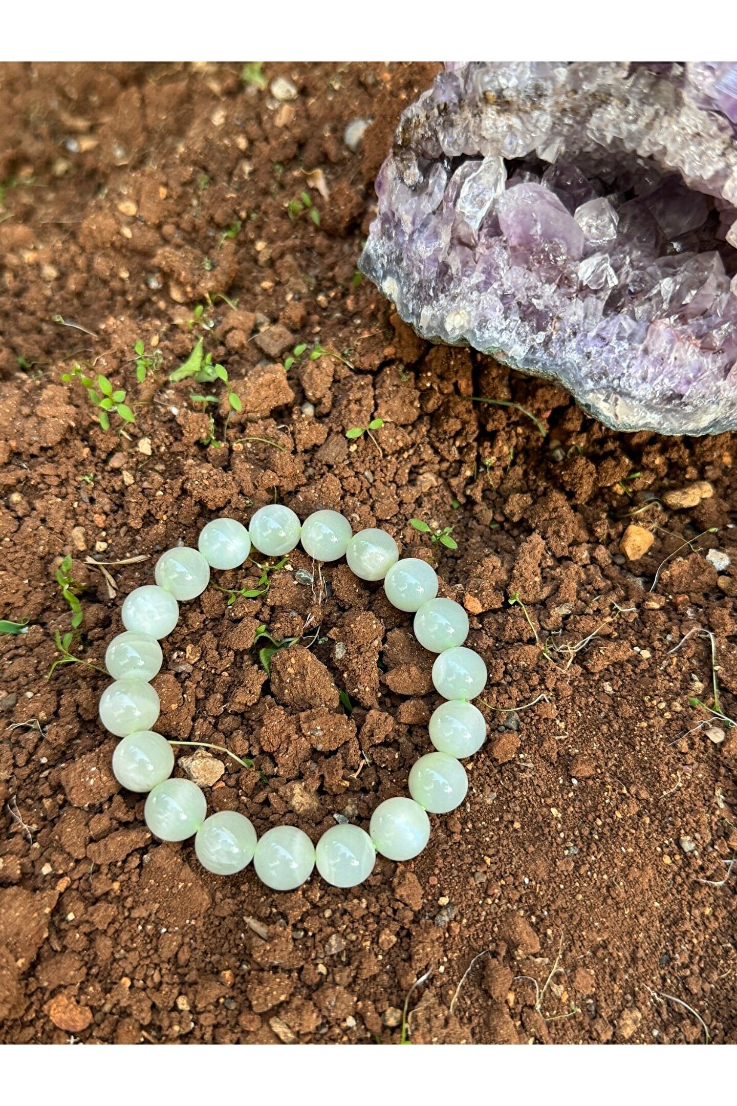 Doğal taş kullanımı sayesinde her bileklik benzersiz ve otantik bir görünüm sunar; Misina materyali, bilekliğin hafif ve rahat bir kullanım sağlarken, dayanıklılığı artırır; Yeşil ay taşı detayı ile hem şıklığı hem de doğallığı bileğinizde taşıyın;