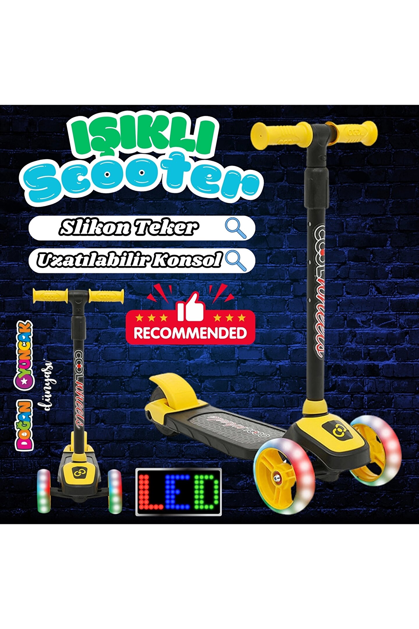 • Cool Wheels 3 Tekerlekli Led Işıklı Çocuk Scooter Led Işıklı Ön Tekerlekler