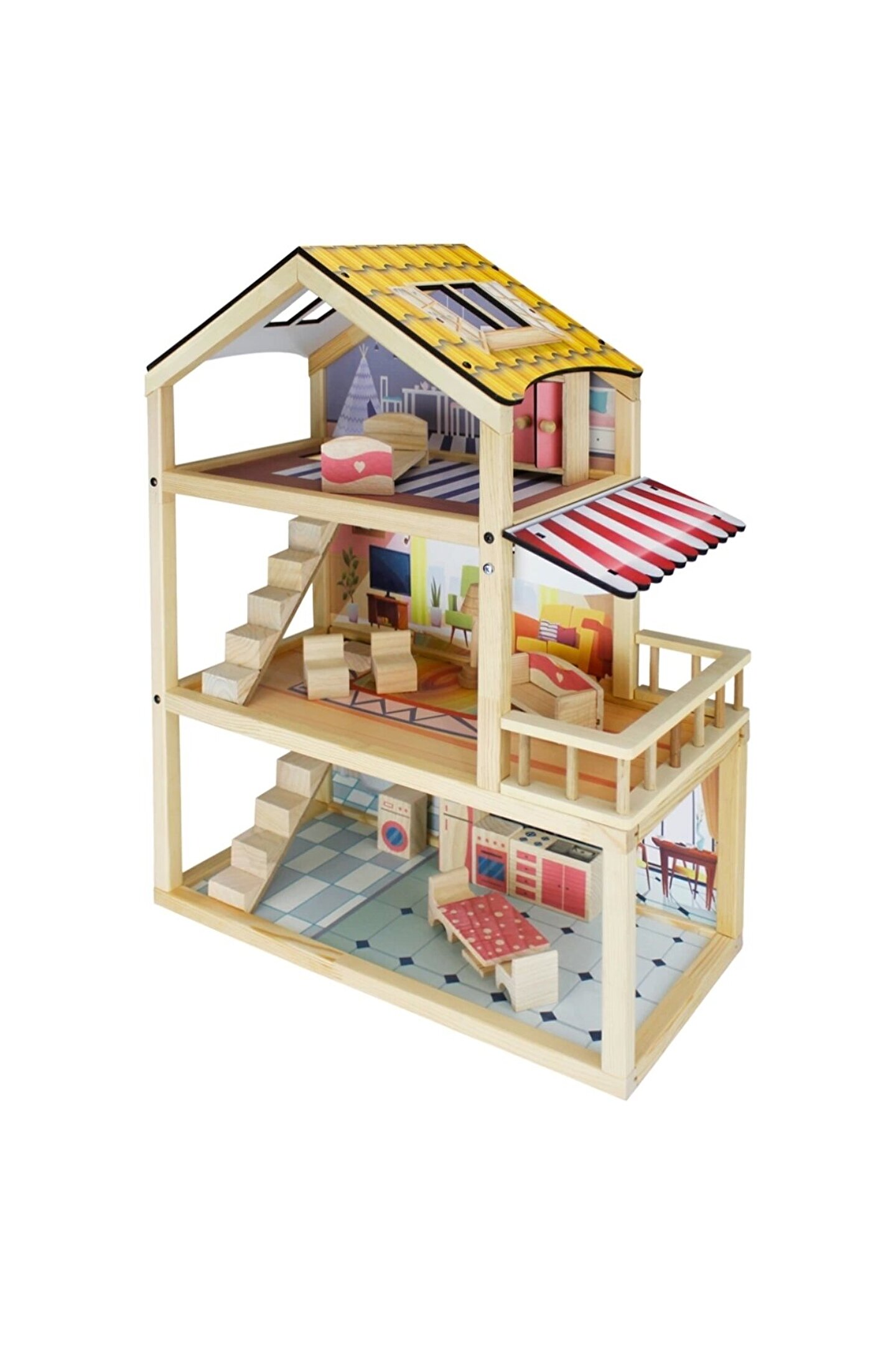 Doğal Ahşap Oyun Evi - Ahşap Tatil Evi - Merdivenli Oyun Evi - Ahşap Ev - Ahşap Oyun Evi