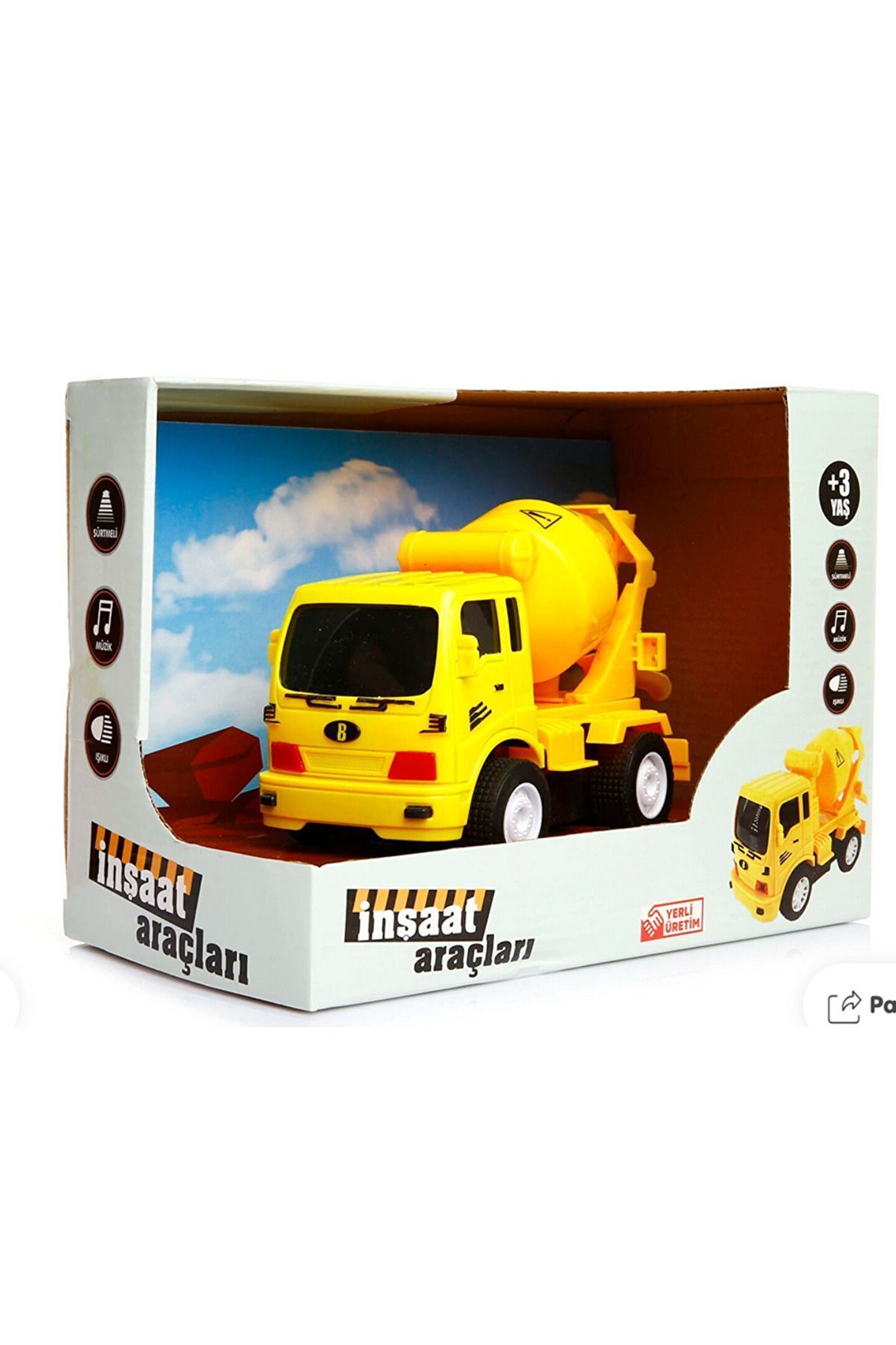 3 yaş ve üzeri çocuklar için ideal, eğlenceli ve eğitici bir oyuncak; Işıklı tasarımı ile çocukların ilgisini çeker ve onları oyuna dahil eder; Sürtmeli mekanizması sayesinde kolay kullanım sağlar ve motor becerilerinin gelişimine katkıda bulunur; İnşaat ve iş makineleri temalı tasarımı, çocukların hayal gücünü harekete geçirir ve yaratıcılıklarını teşvik eder; Dayanıklı yapısı ile uzun süreli kullanım sunar ve çocukların güvenle oynayabileceği bir oyuncak haline gelir;