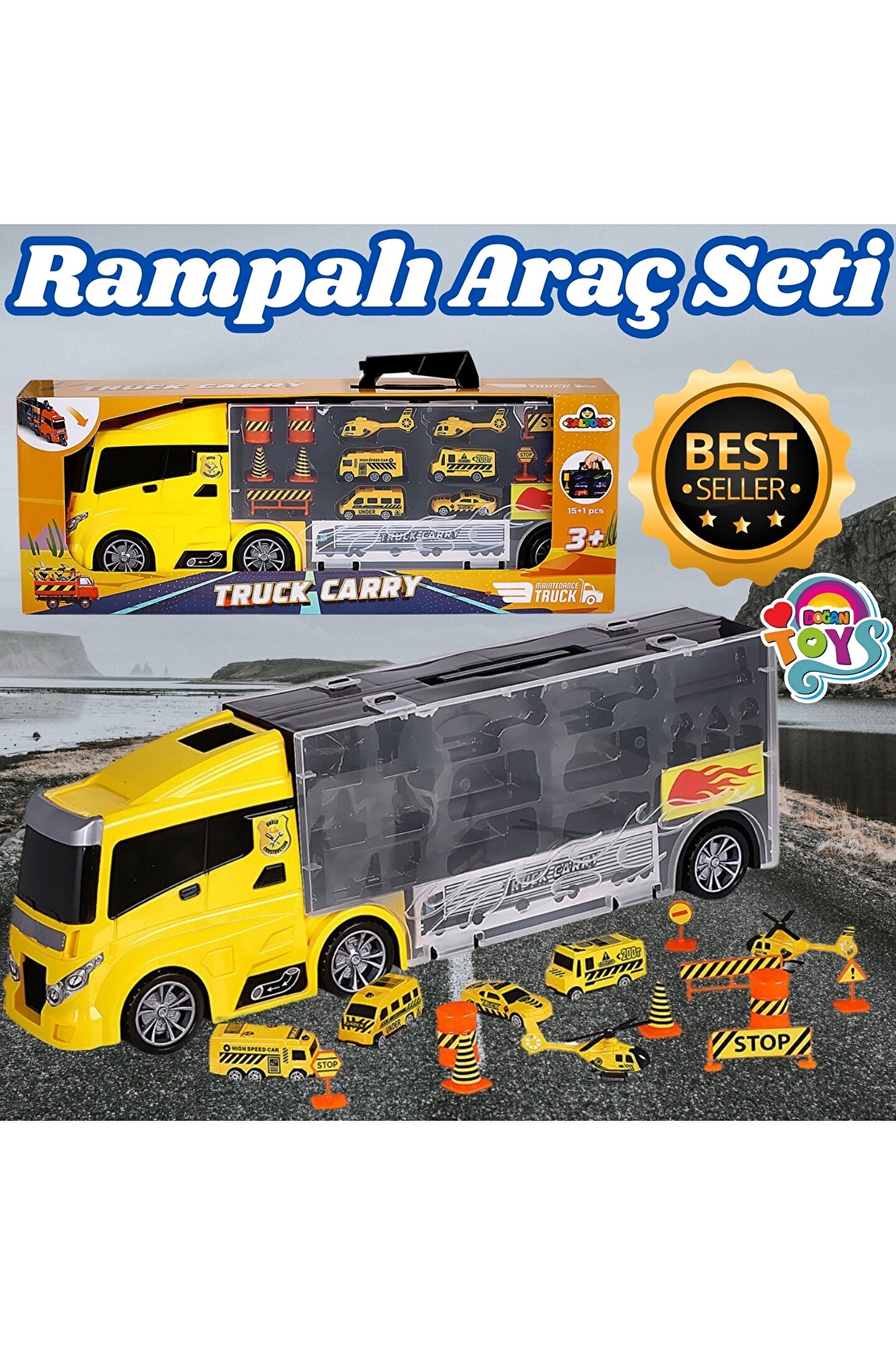 Oyuncak İnşaat Taşıyıcı Tır 15+1 Parça GLT-E404, çocuklar için hem eğlenceli hem de öğretici bir oyuncaktır.; ; Bu İnşaat taşıyıcı tır, 15 araç ve 1 adet İnşaat şehri aracıyla birlikte gelir, böylece çocuklar İnşaat temasını canlandırabilirler.; ; Tır, çeşitli İnşaat araçlarını taşıyabilen geniş bir kasa ile tasarlanmıştır ve detaylı yapısıyla dikkat çeker.; ; Çocuklar, bu oyuncak sayesinde İnşaat operasyonlarını simüle edebilir ve yaratıcı oyun senaryoları oluşturabilirler.; ; Ayrıca, bu set, motor becerilerini geliştirmek ve hayal gücünü artırmak için ideal bir seçenektir.; ; Kutu Boyutu : 63x23x13 Cm; Tırın ön tarafında kaydırak için bir kapak bulunmaktadır.; Dorse ksımının ön tarafından araçları koyup ön tarafından çıkartabiliyorsunuz.; ; Harikalar yaratan bu oyuncağı kim istemez ki!; Haydi sende hem aksesuarı hemde kaydırağı ile meşhur olan bu oyuncağa hemen sahip ol!;
