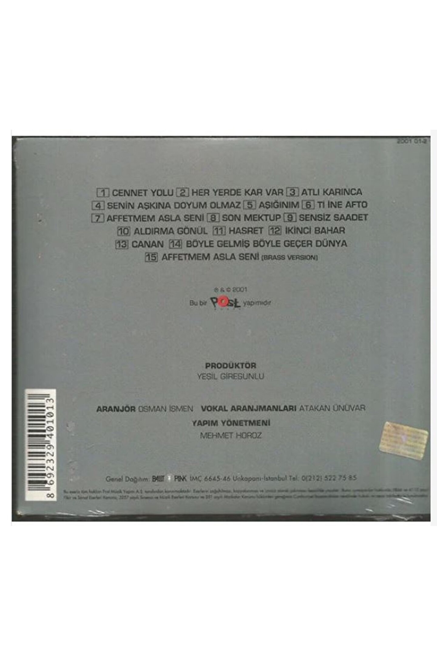 1 Cennet Yolu ; 2 Her Yerde Kar Var ; 3 Atlı Karınca ; 4 Senin Aşkına Doyum Olmaz ; 5 Aşığınım ; 6 Ti İne Afto ; 7 Affetmem Asla Seni ; 8 Son Mektup ; 9 Sensiz Saadet ; 10 Aldırma Gönül ; 11 Hasret ; 12 İkinci Bahar ; 13 Canan ; 14 Böyle Gelmiş Böyle Geçer Dünya ; 15 Affetmem Asla Seni (Brass Version) ; ;