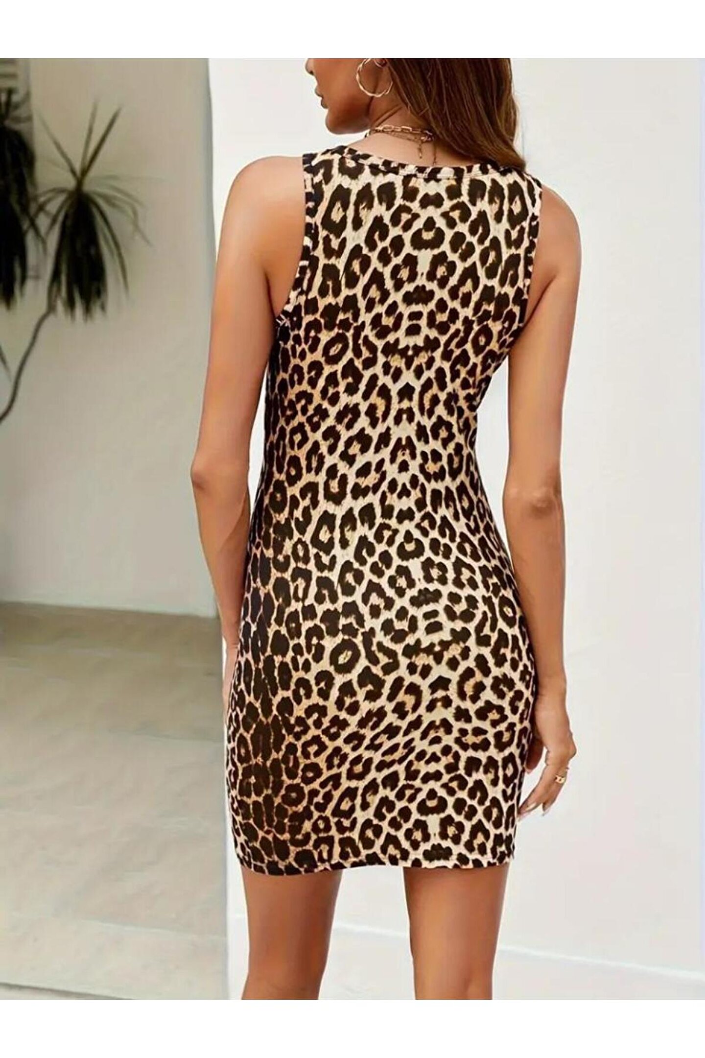 DÖPİYES Kadın Askılı Yuvarlak Yaka Leopar Desenli Süprem Elbise
