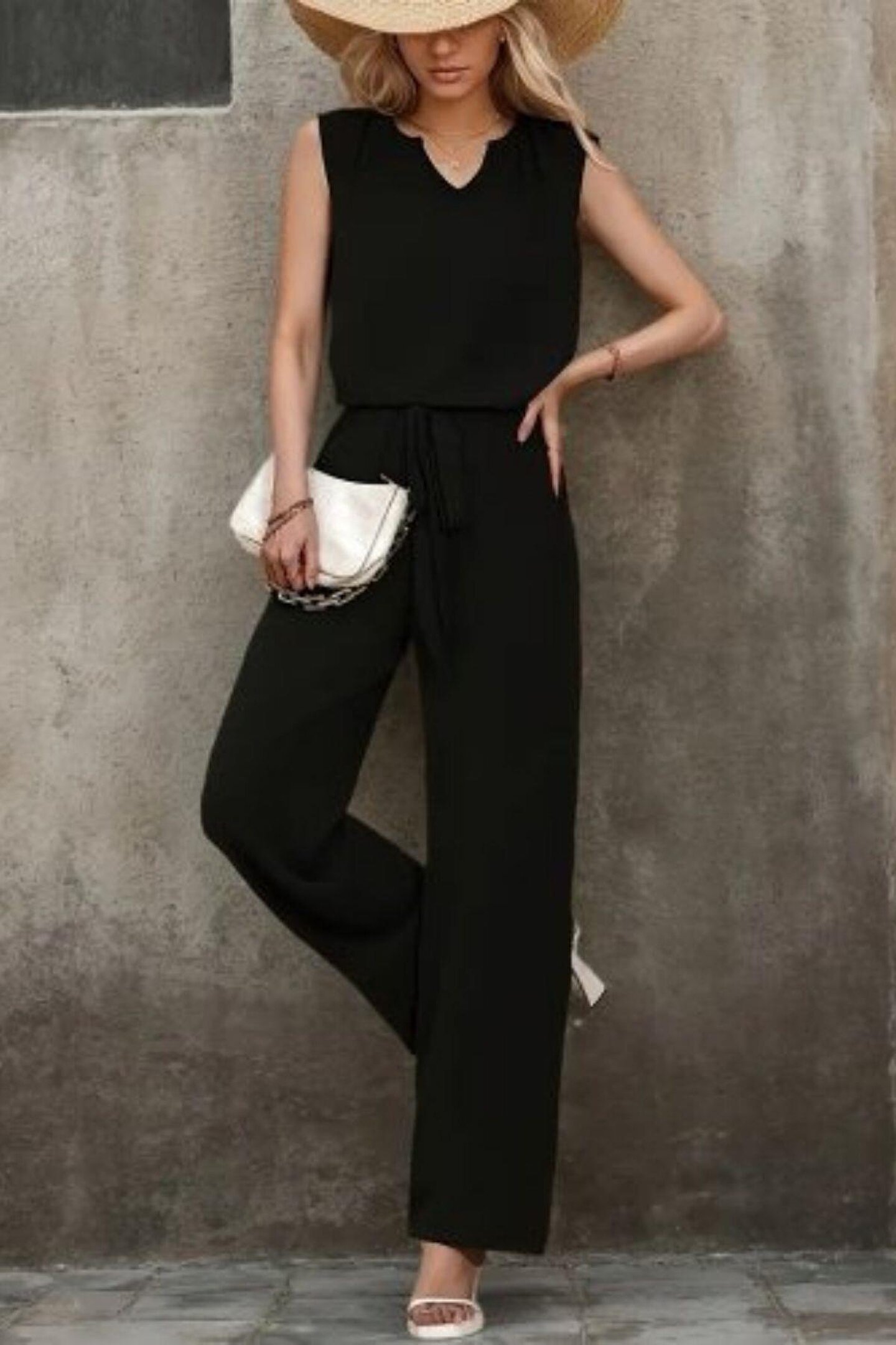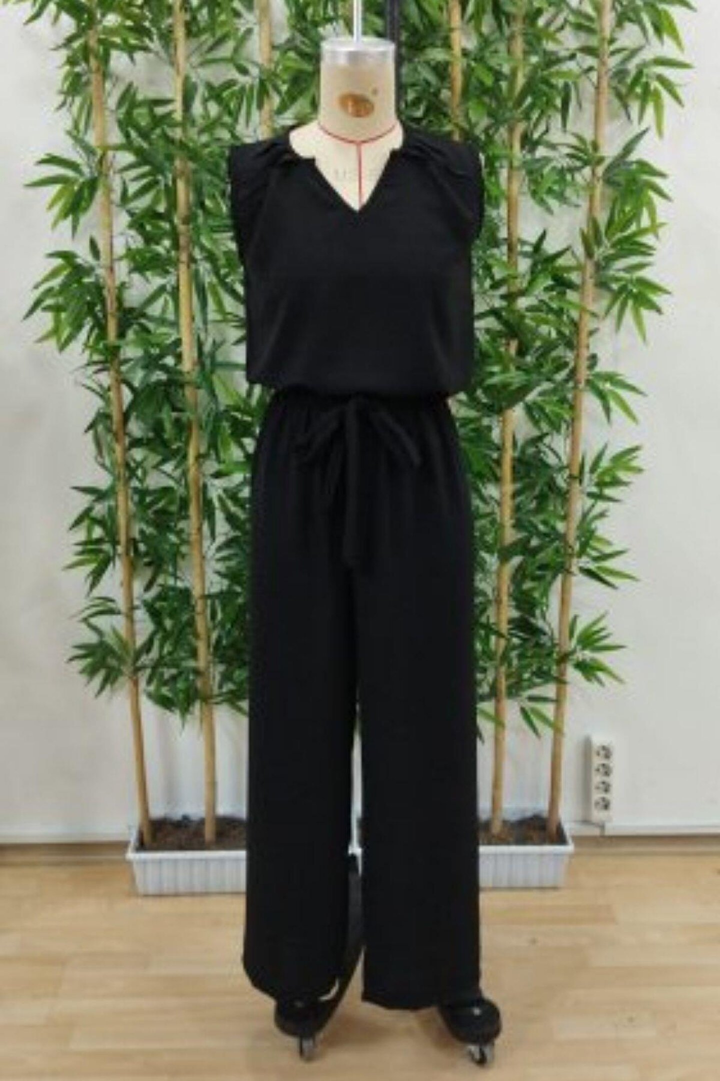 Kadın Kolsuz V Yakalı Aerobin Bluz Ve Belden Kuşaklı Pantolon Ikili Takım