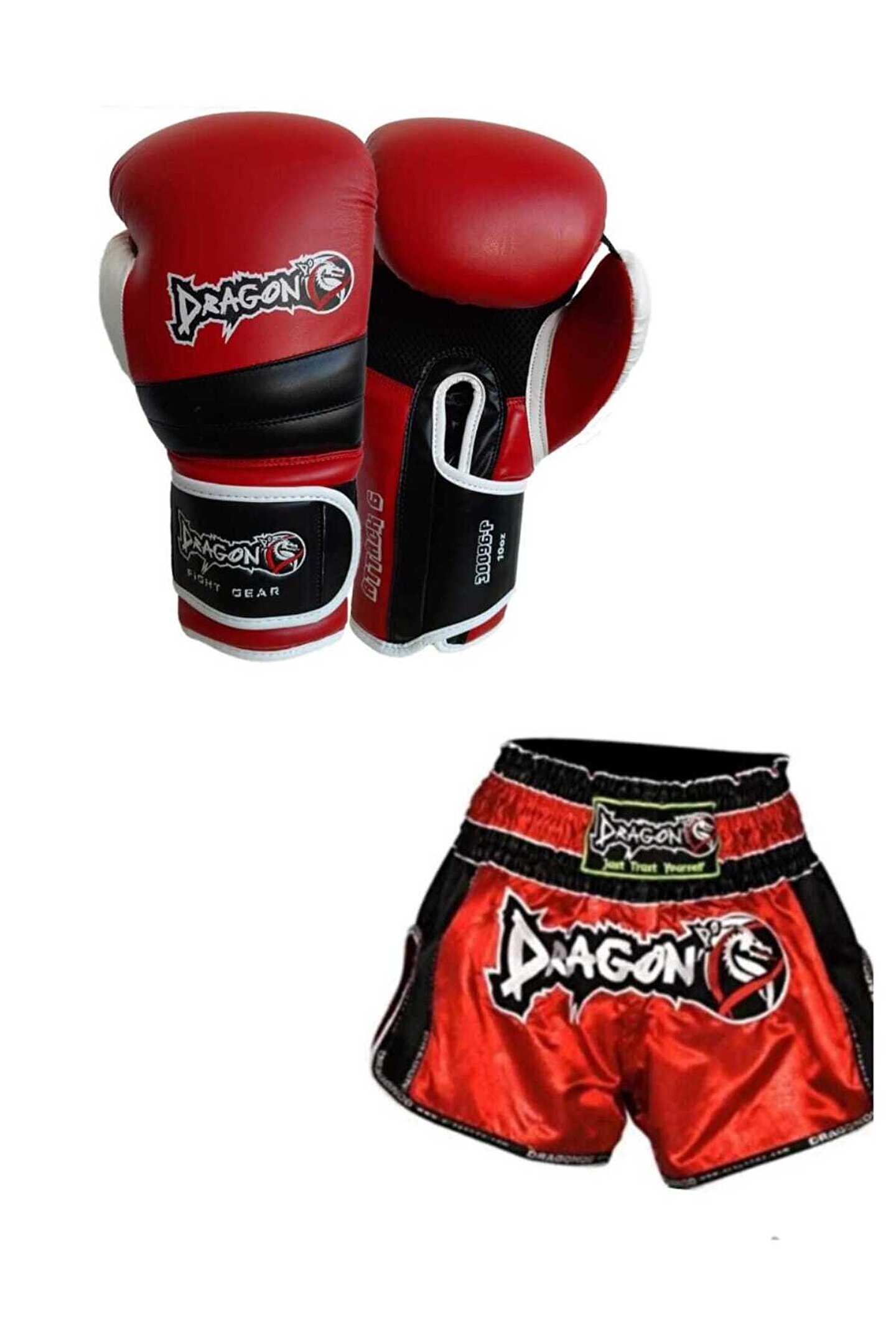 Dragondo Attack Boks Eldiveni 10 Oz, Retro Şort 2 li Set Kick Boks Muay Thai Set , Boks Seti