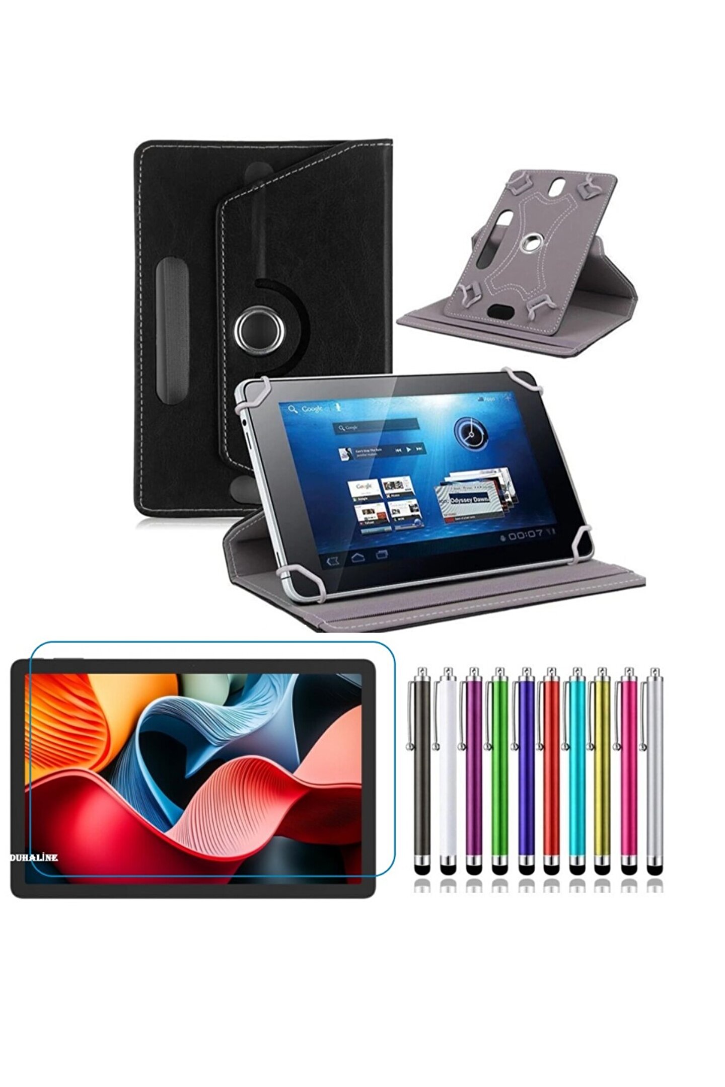 DÖNER STANTLI TABLET KILIFI + NANO KIRILMAZ EKRAN KORUYUCU CAM + DOKUNMATİK KALEM