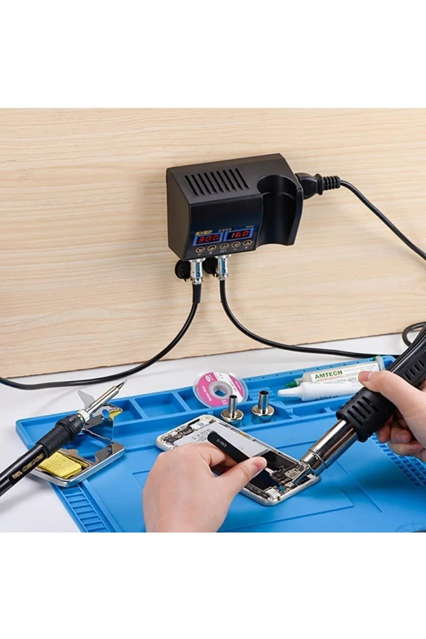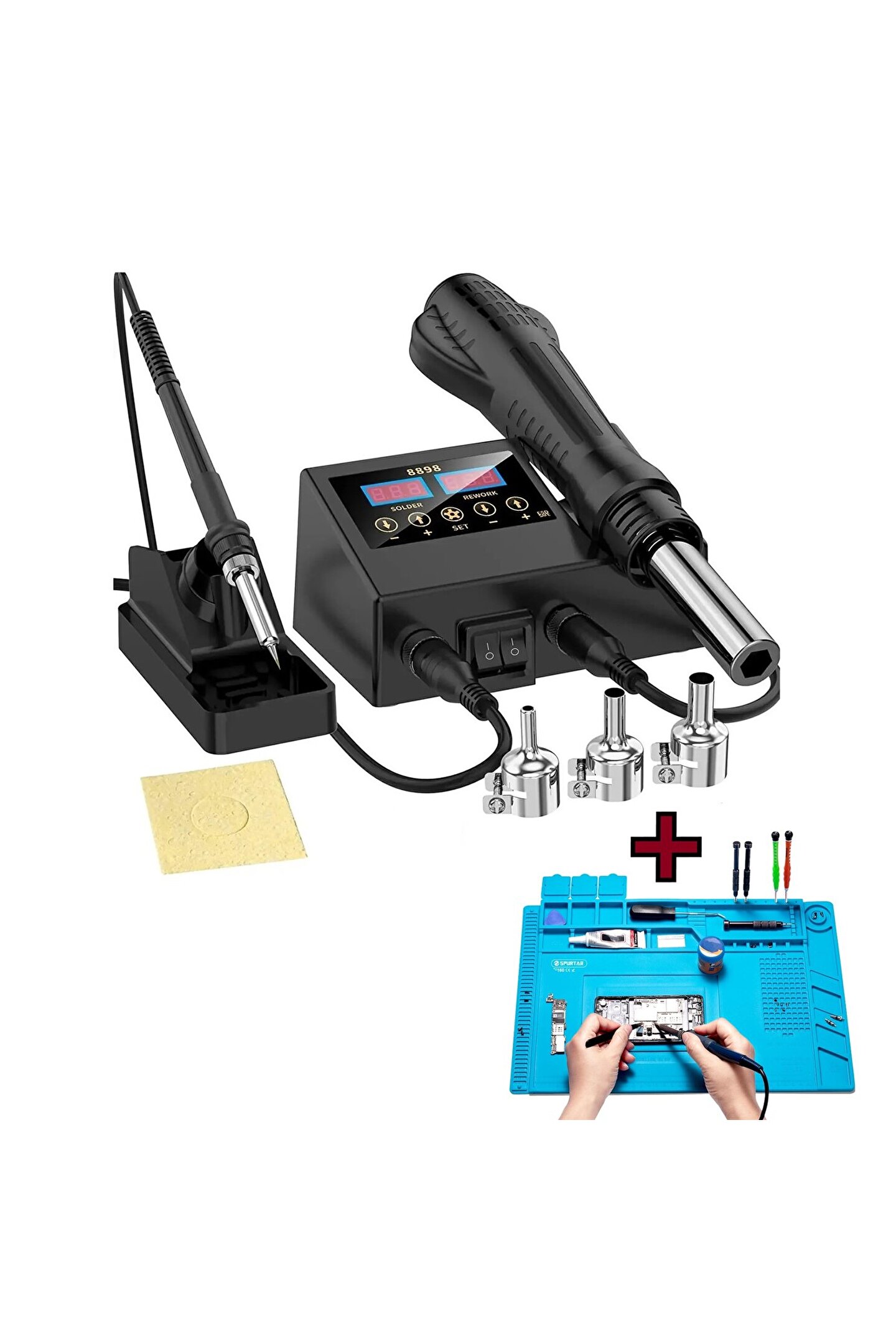 Sıcak Hava Üflemeli Havya İstasyonu Dijital Ekran 2in1 LehimMakinesi ve Hava Tabancası + TAMİR MATI