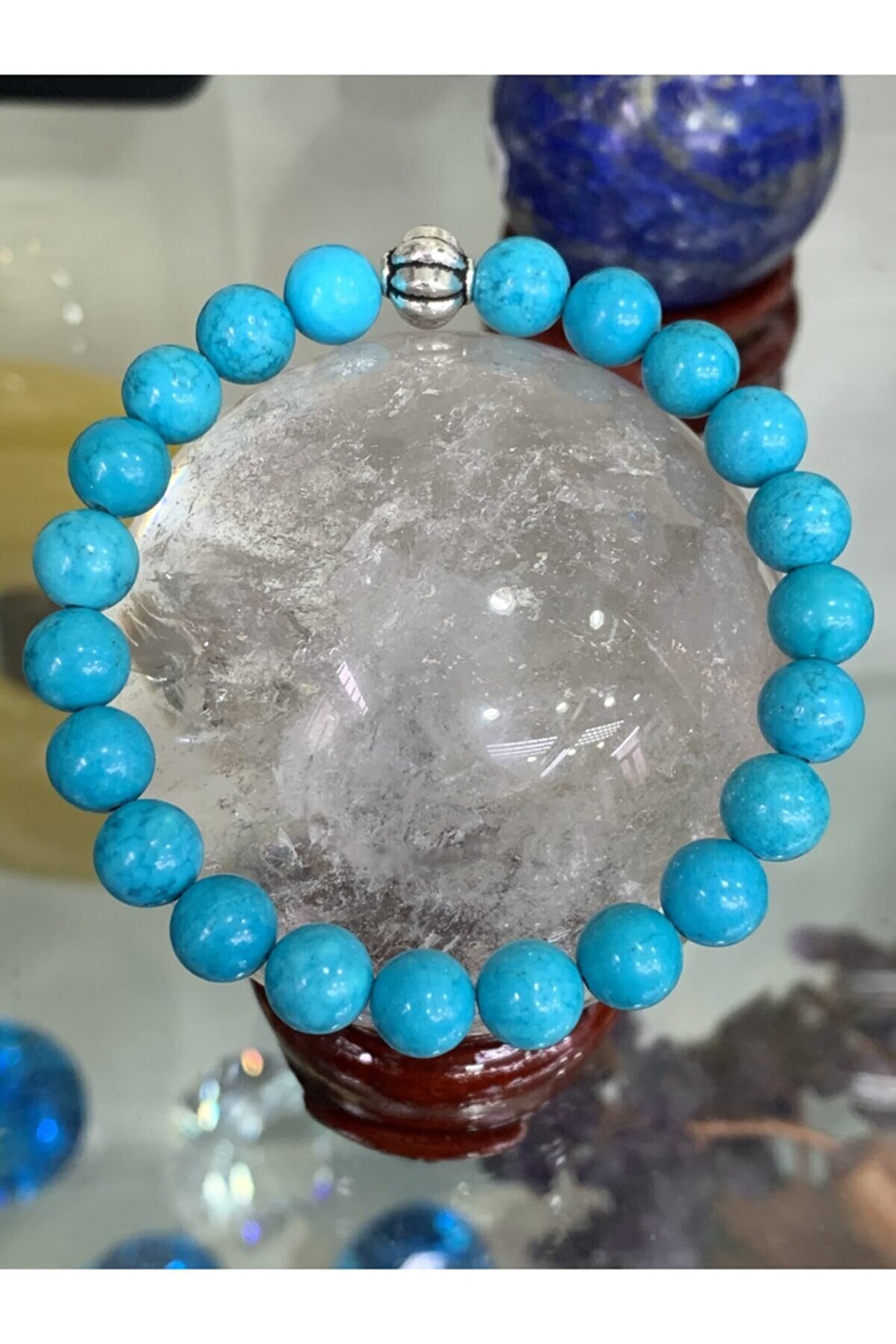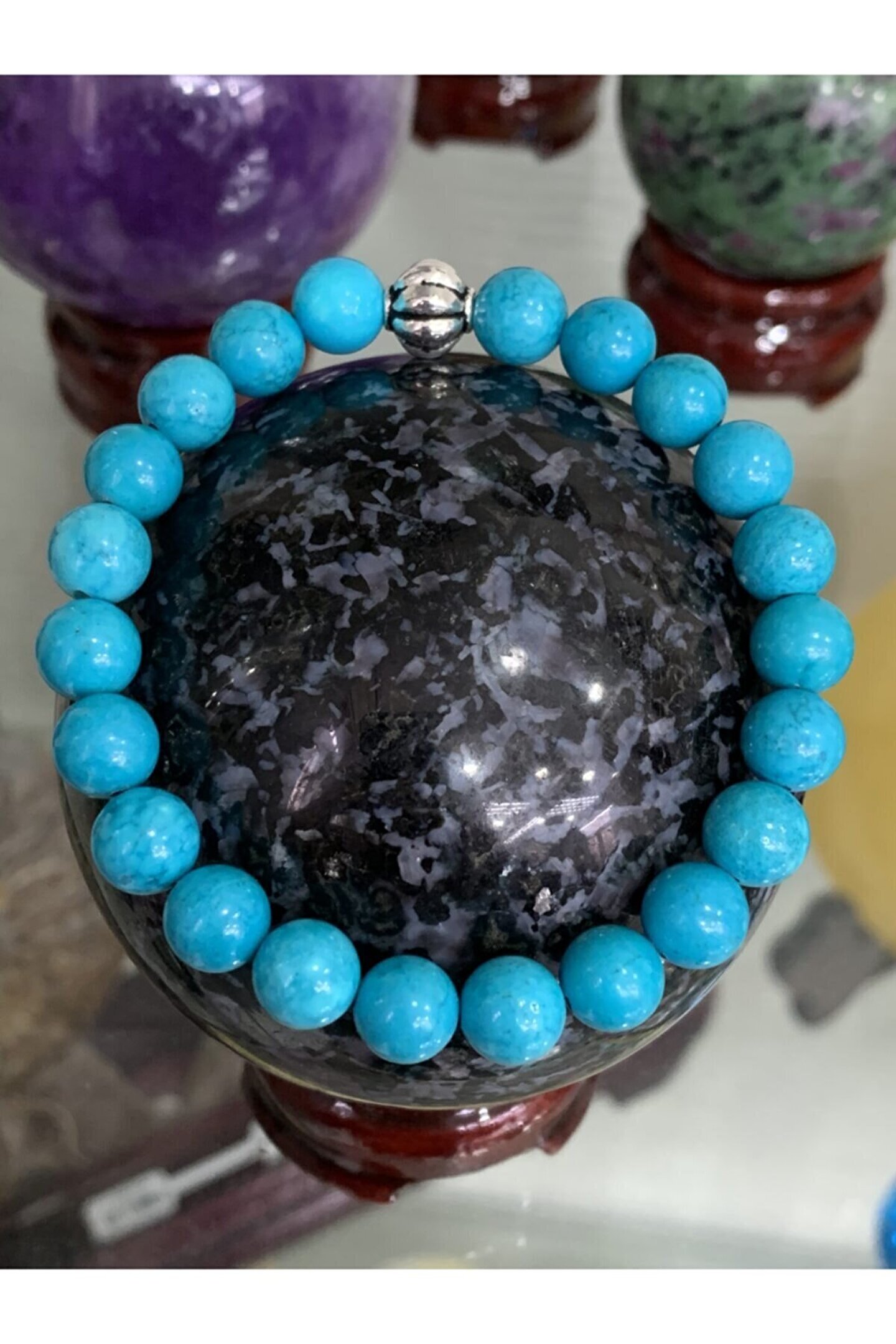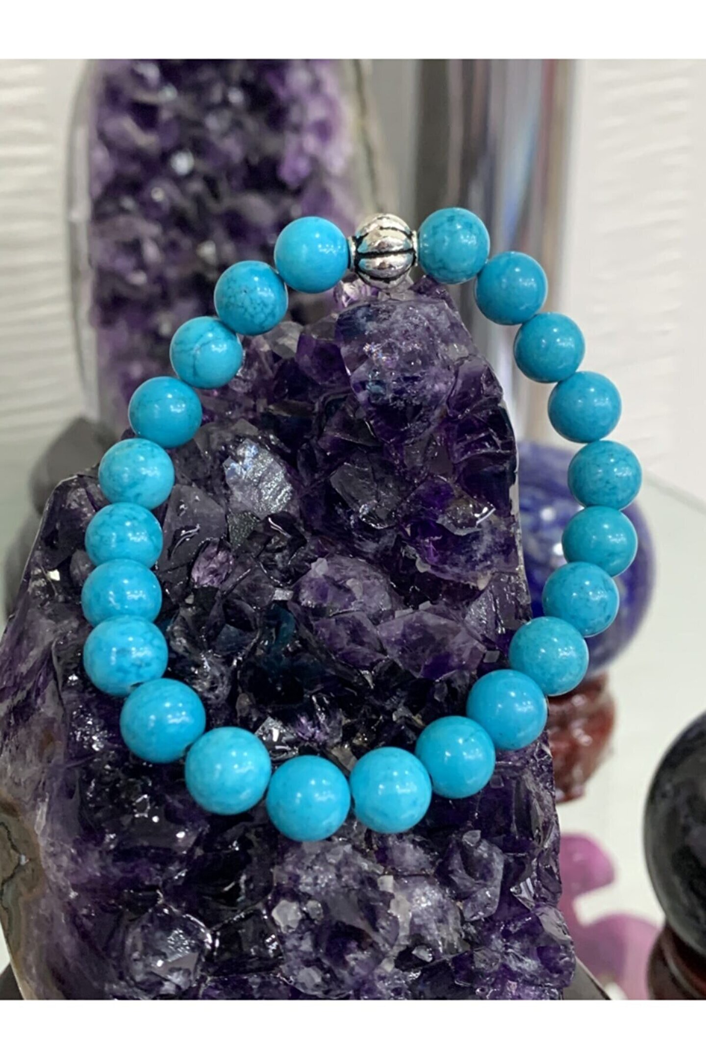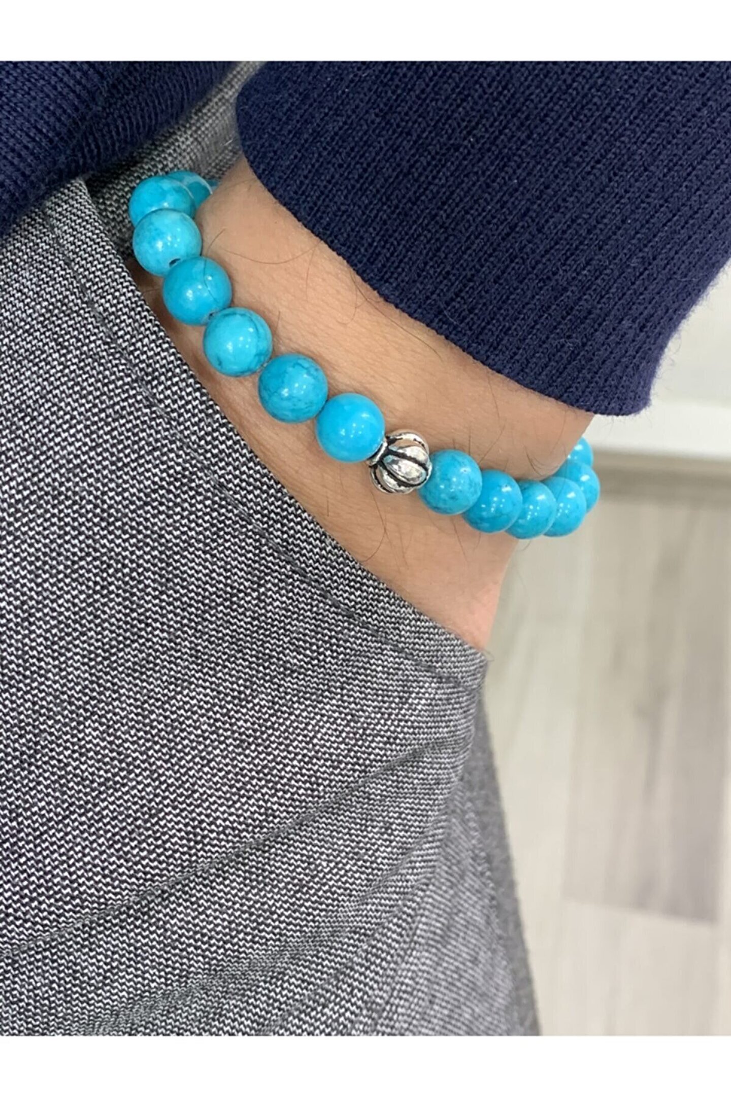 Doğal taş kullanımı sayesinde her bileklik benzersiz ve otantik bir görünüm sunar; Firuze taşı, bilekliğe zarif bir parlaklık ve renk çeşitliliği katar; Doğal taş materyali ile hem şıklığı hem de doğallığı bir arada yaşatır; El yapımı olması, her bir bilekliğin eşsiz ve özgün bir parça olmasını sağlar;