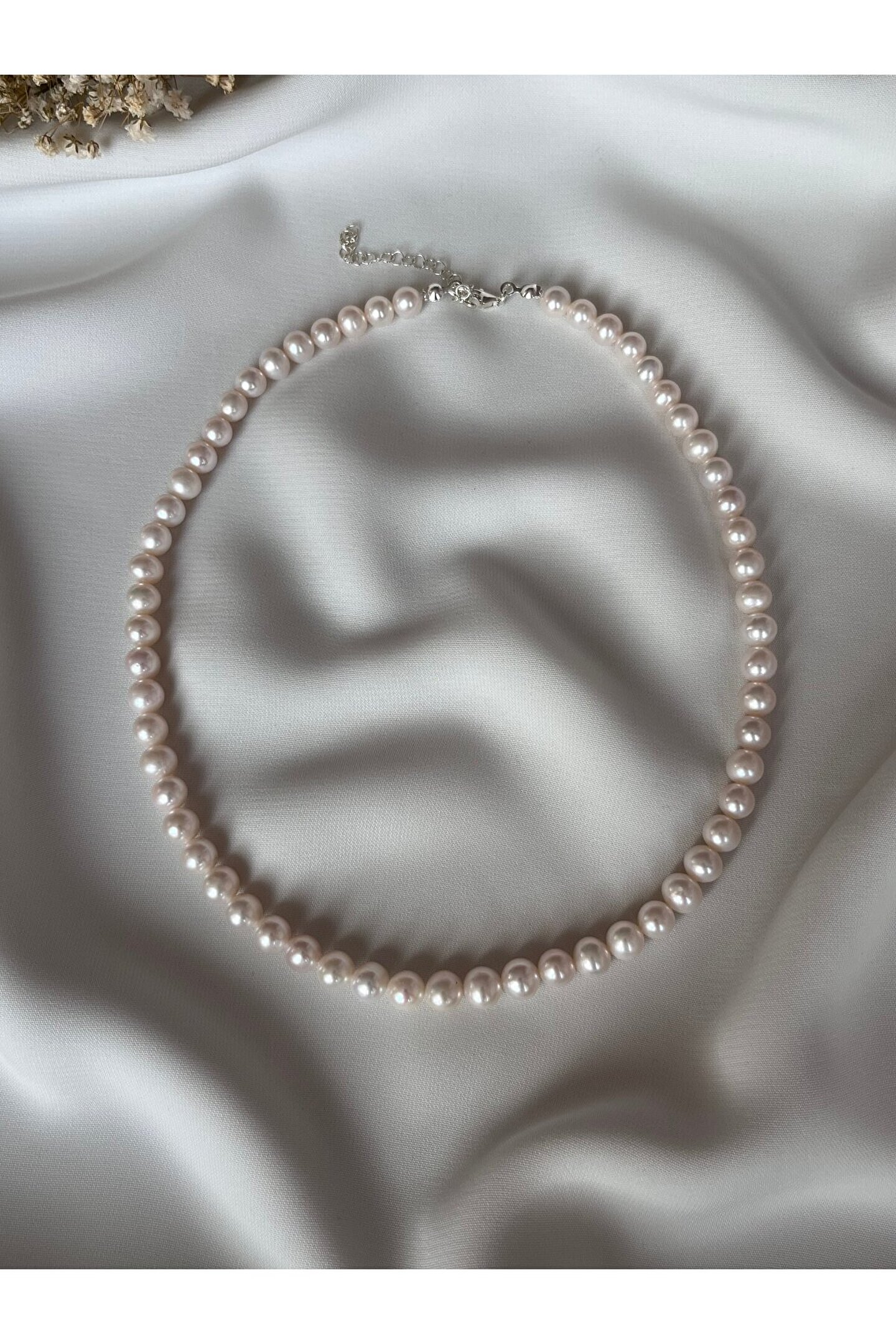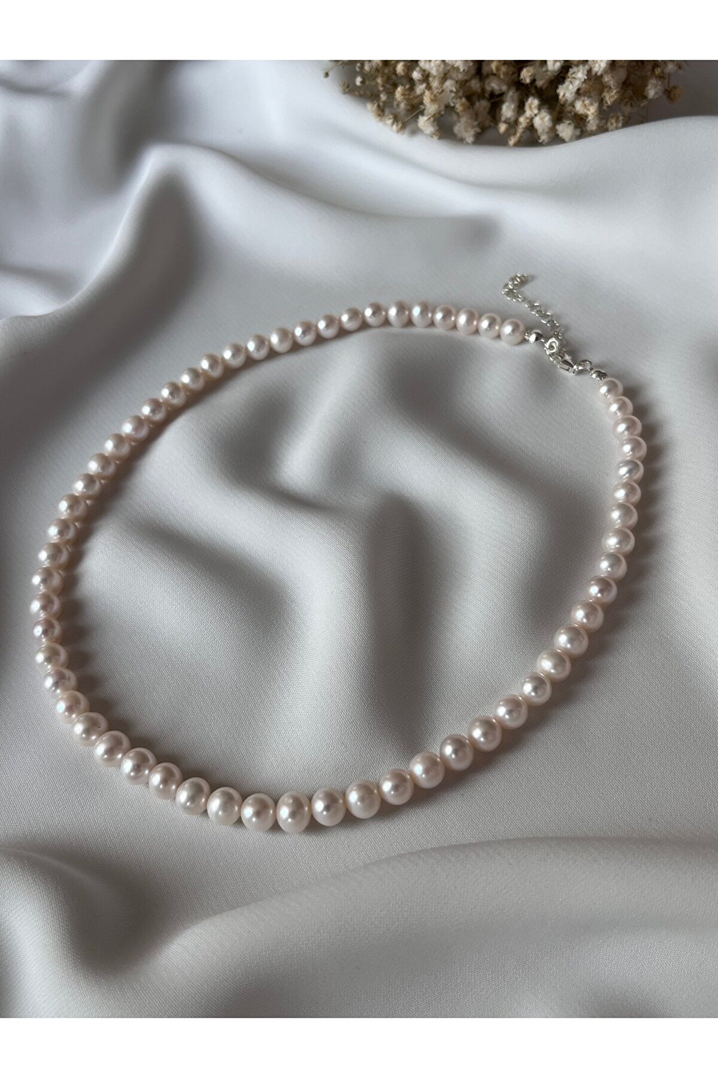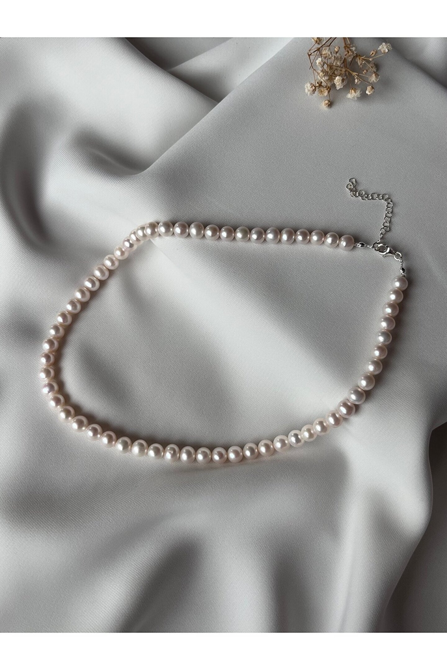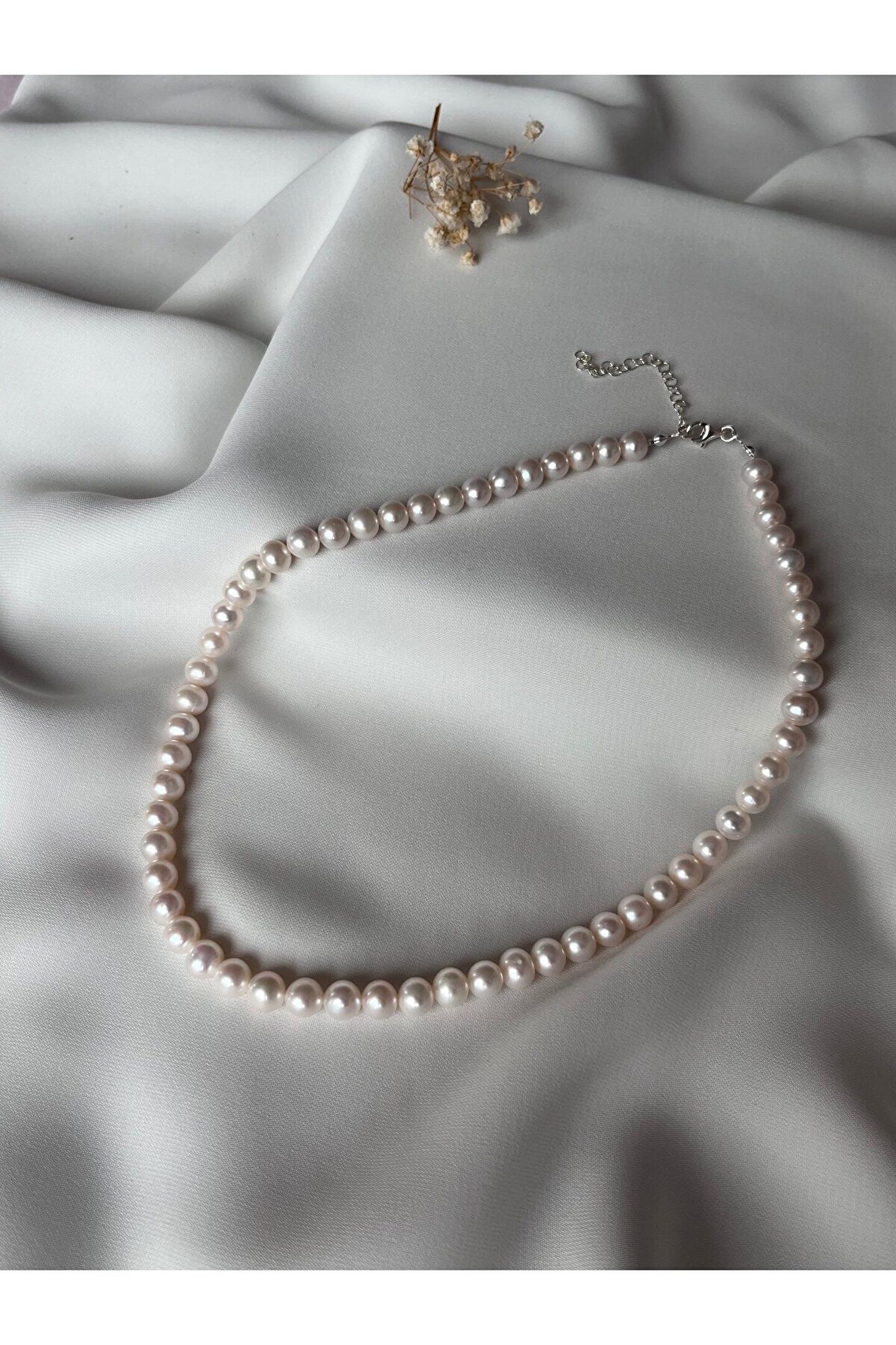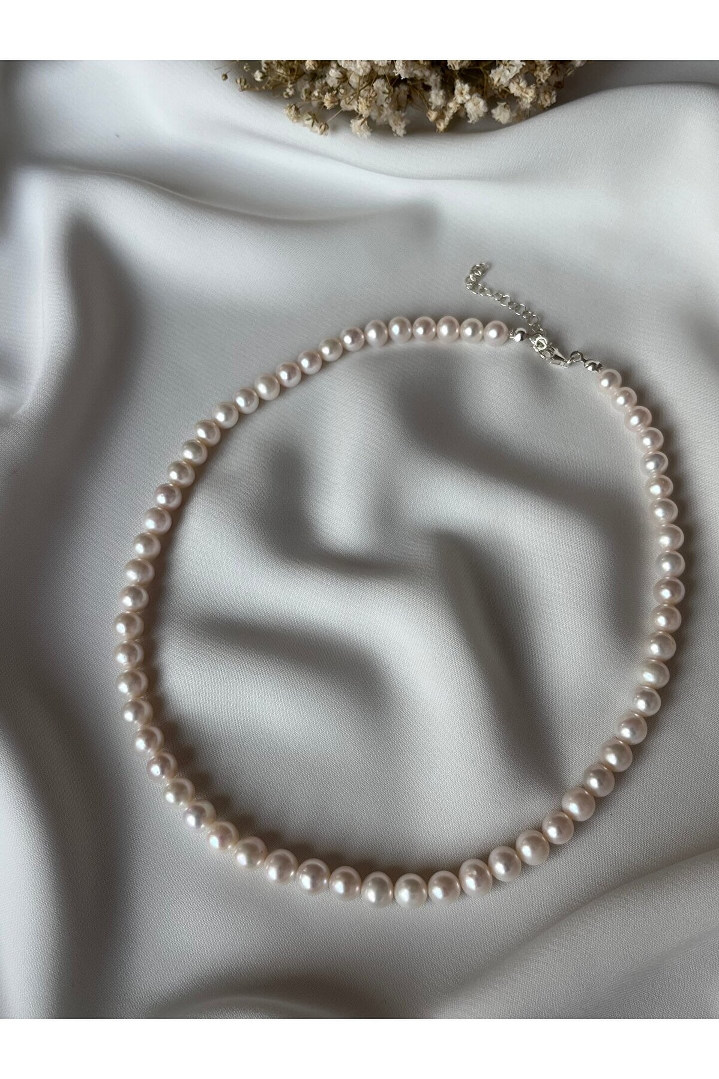 Gerçek inci kolye, zarif tasarımıyla göz alıcı bir aksesuar seçeneği sunar; Tatlı su incisi kullanılarak üretilmiş olup, her bir inci ayrı ayrı el işçiliği ile özenle seçilmiştir; Gümüş kaplama ile zenginleştirilmiş bu kolye, hem şıklığı hem de dayanıklılığı bir arada sunar; Özel günlerde veya günlük kullanım için ideal olan bu kolye, her kıyafetle uyum sağlayacak şekilde tasarlanmıştır;
