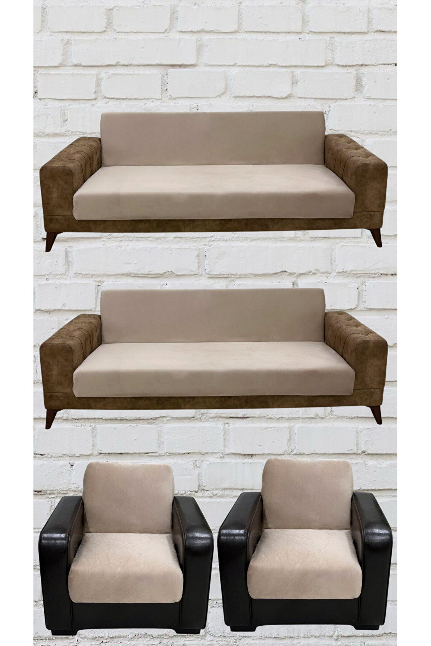 Duru Home Tekstil 3+3+1+1 İtalyan Süet Kolsuz Koltuk Örtüsü (VİZON RENK)