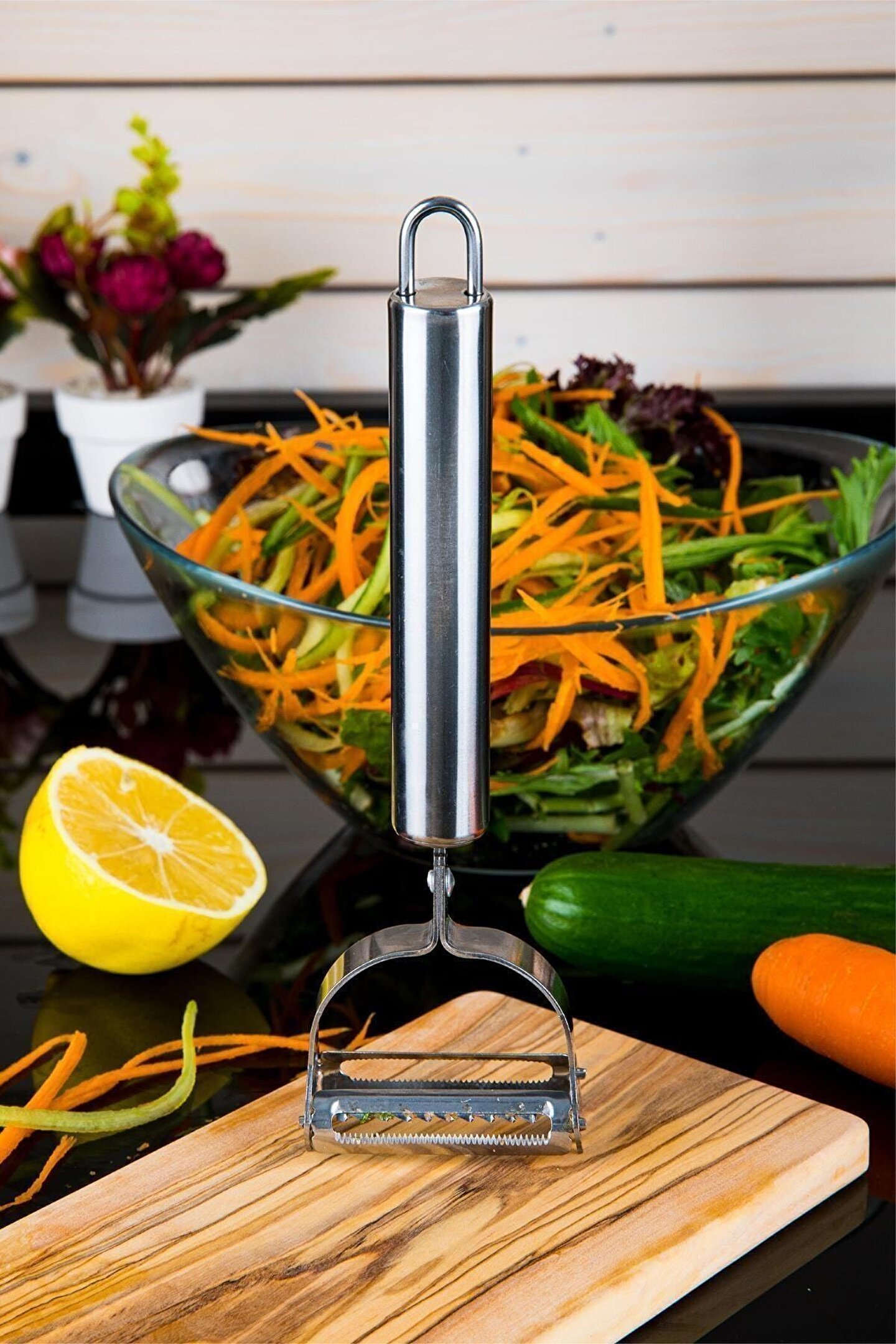 ÜRÜN BİLGİSİ: DuoFit çelik soyacak. ; Çift başlı olması ile size mutfakta hem yer hem zaman tasarrufu sağlayacak olan DuoFit soyacak, yüksek kalite paslanmaz çelikten üretilmiştir. ; MATERYAL: Çelik RENK: Çelik Rengi, Gümüş İÇERİK: Çelik Soyacak ÖLÇÜLER: Yükseklik: 17 cm;