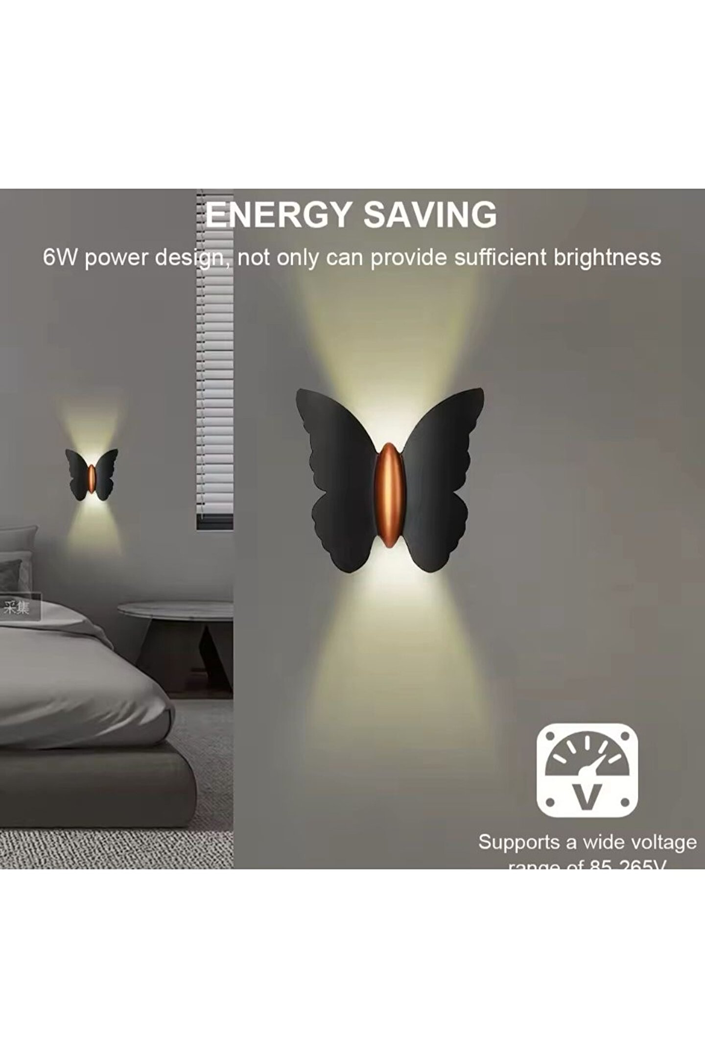 ECONA Modern Duvar Power Iç Ve Dış Mekan Aplik Butterfly Led Aplik Siyah Gövde Gün Işığı Kelebek Aplik