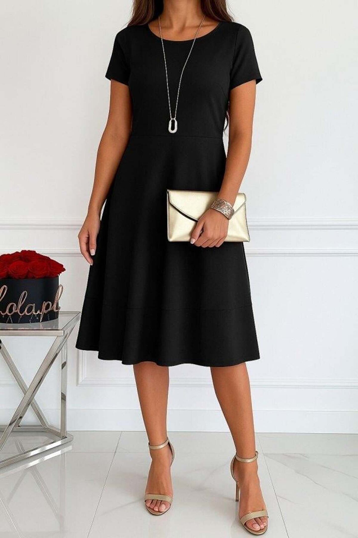 Kadın Kısa Kollu Bisiklet Yaka Cepli Viskon Iki Iplik Elbise