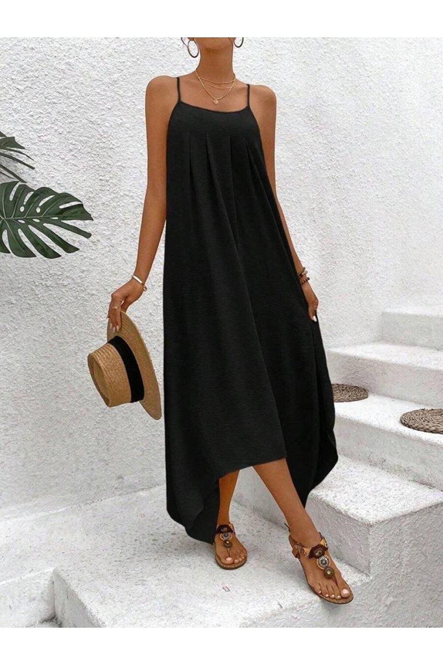 Kadın Ip Askılı V Yakalı Asimetrik Detaylı Aerobin Elbise