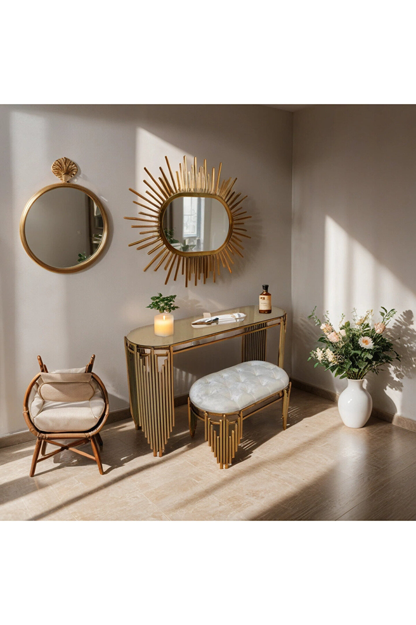 Modern tasarımıyla evinizin dekorasyonuna şıklık katan metal dresuar takımı, dayanıklı yapısıyla uzun ömürlü kullanım sunar; Paslanmaz kararmaz lak kaplama sayesinde, zamanla renk değişimi ve kararma gibi sorunlarla karşılaşmazsınız; Aynalı yapısı ile hem fonksiyonel hem de estetik bir görünüm sağlar; günlük kullanım için idealdir; Metal malzemesi sayesinde ağır eşyalarınızı güvenle yerleştirebilir ve dresuarın sağlamlığını hissedebilirsiniz;