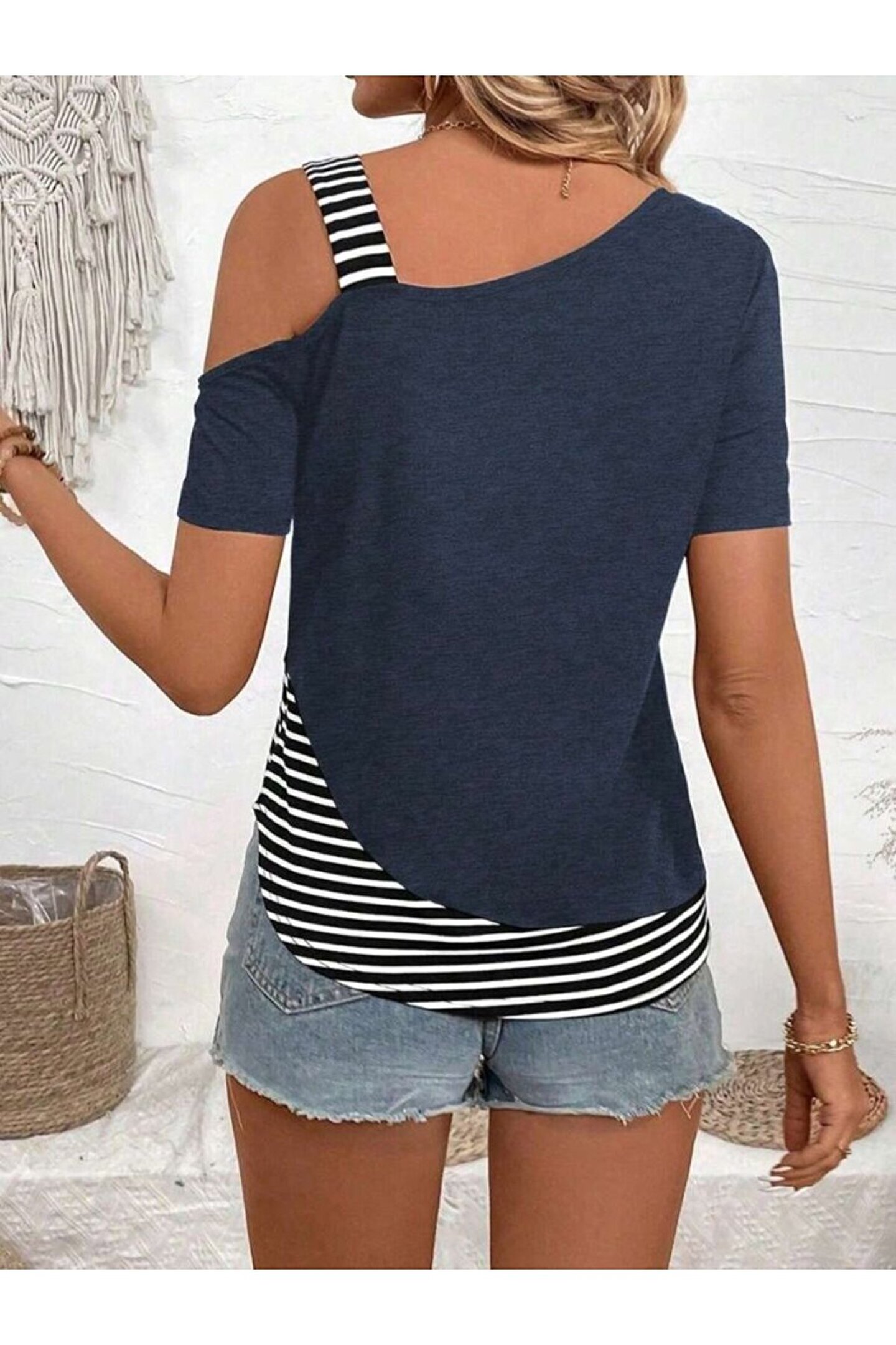 Kadın Kısa Kollu Omuzdan Askılı Viskon Bluz