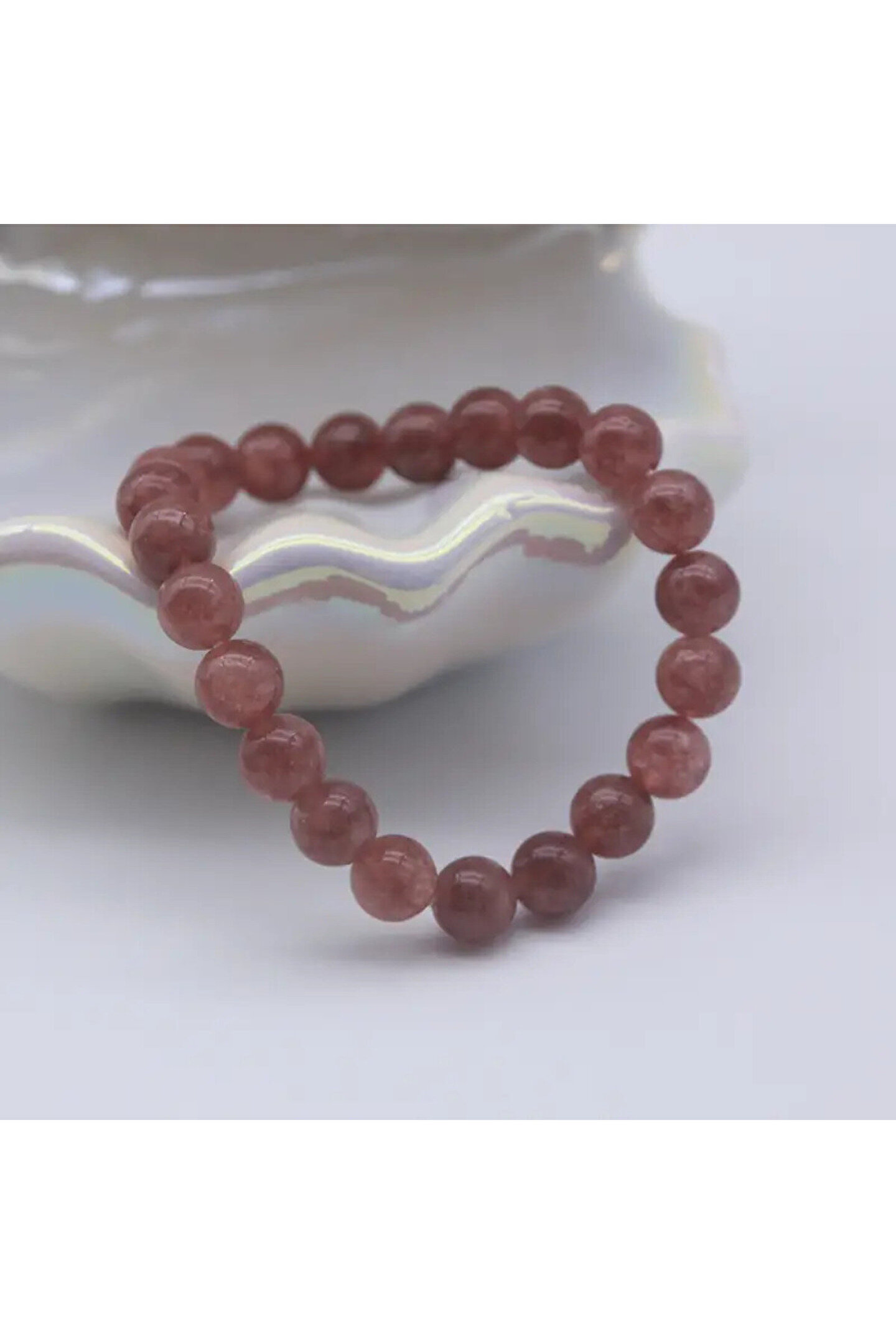 EL YAPIMI Şifalı - Çilek Kuvars Doğal Taş Bileklik 6 mm – Sevgi ve Pozitif Enerji Taşı - Elastik ipli
