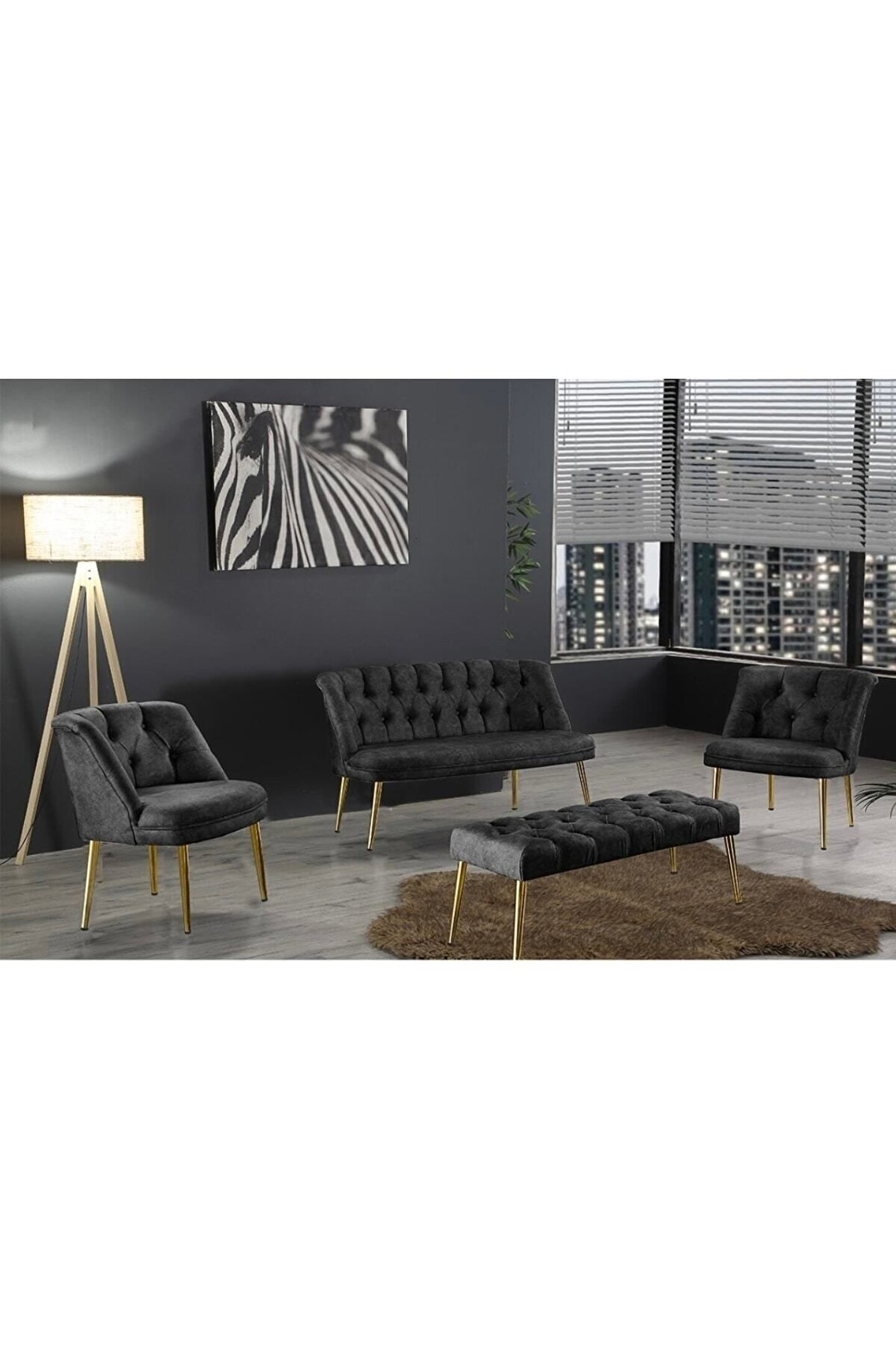 Nev Elizzan çay seti; koyu gri rengin asaletine sahip 2+2+1+1 takım içeriğinden oluşur. Kullanım konforu ve şıklığı modelde ön plana çıkar.; Koltuk ölçüleri; ikili koltuk için uzunluk 118 cm, yükseklik 78 cm, oturum yüksekliği 45 cm, oturun derinliği 48 cm ve sırt kısmı 33 cm'dir. ; Tek kişilik koltuk ölçüleri ise; uzunluk 60 cm, yükseklik 75 cm, oturum derinliği 48 cm, oturum yüksekliği 45 cm ve sırt kısmı 33 cm şeklindedir.; 2 adet iki kişilik koltuk ve 2 adet tek kişilik koltuktan oluşan set, nubuk kumaştan üretilir.; İskeleti tamamen gürgen ağacından oluşur. Ayak kısımları, metal ile dayanıklı hale getirilir. ; Chester kapitone tasarım ile dizayn edilen model; estetik, asil ve çarpıcı bir görünümü hedefler. Yanı sıra tasarımının temelinde sağlamlık ve konfor ön planda yer alır.; Balkon, teras, kış bahçesi, okuma ve çalışma odası, salon, mutfak gibi dilediğiniz her alanda kullanıma uygunluk gösterir. Ayrıca çeşitli iş yerlerinde bekleme alanı dekorasyonunu yenilemek için tercih edilebilir.; İskeletindeki gürgen ağacı sayesinde uzun vadede sağlam ve konforlu bir kullanım sunar. Kumaş temizliği ve bakımını rutin olarak yaparak takımın sunduğu şıklığı koruyabilirsiniz.; Silinebilir kumaş özelliği sayesinde koltuk temizliğini nemli bir bez veya sünger aracılığıyla pratik bir şekilde yapabilirsiniz.;