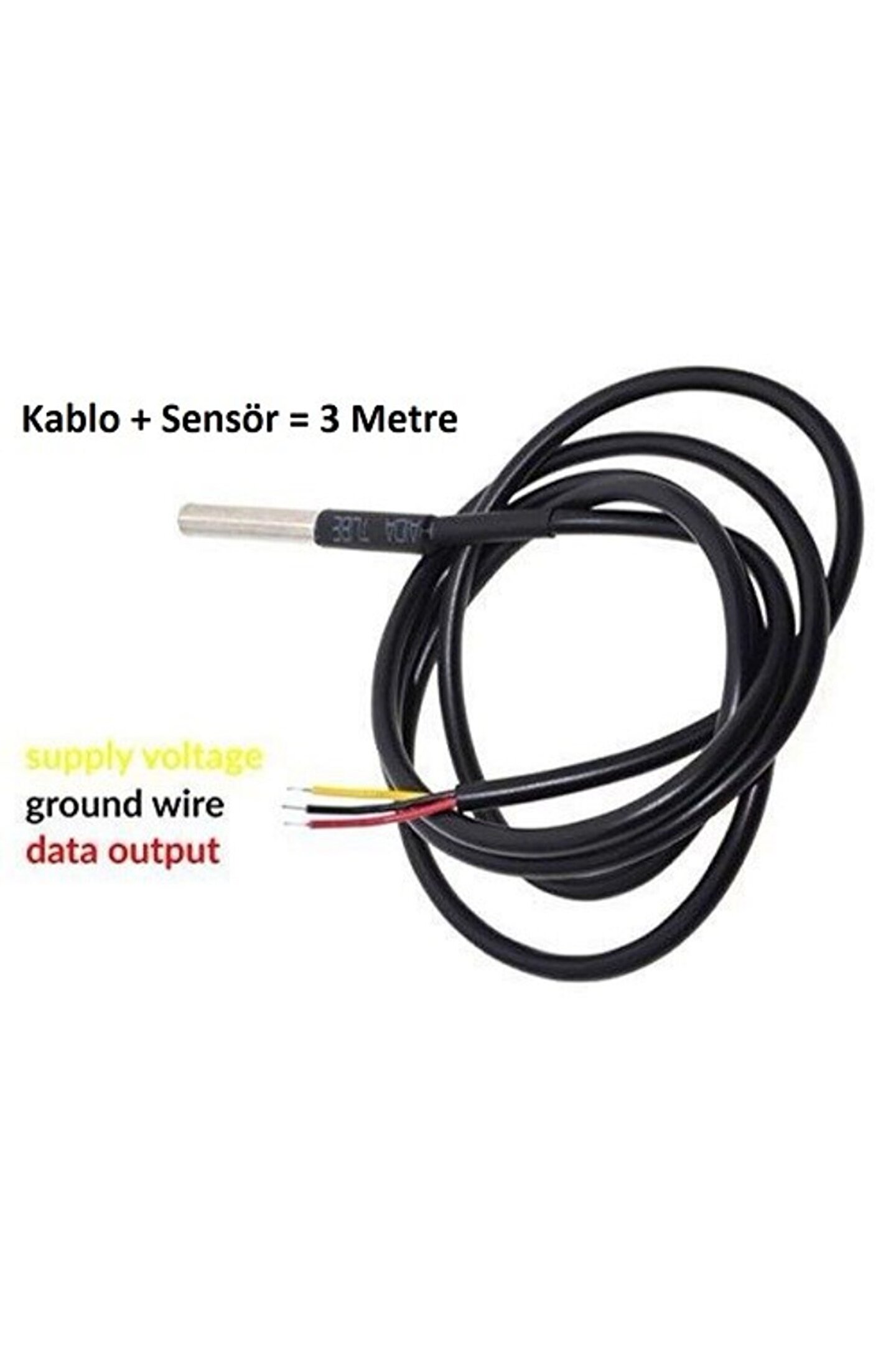 DS18B20 sensörünün su geçirmez sürümüdür. ; Dijital bir sensör olduğu için 1 metre uzunluğundaki kablosu yardımıyla derin mesafelerdeki sıcaklık rahatlıkla ölçülebilir ve data transferinde herhangi bir bozulma olmaz. ; Tek kablo (1-wire) arabirimi üzerinden 9 veya yapılandırılabilir 12 bitlik okuma gerçekleştirilebilir. ; Çeşitli bina içi, teçhizat, makine ve sıvı havuzlarının sıcaklık ölçümleri rahatlıkla yapılabilir. ; Özellikleri: Çalışma Voltajı : 3.0V-5.0V ±0.5º C hassasiyetle -10º C-80º C arasında sıcaklık okuması 9 veya 12 bit seçilebilir çözünürlük 1-wire arabirimi ile iletişim için tek dijital pin kullanılabilir. ; Sıcaklık limiti uyarı sistemi bulunmaktadır. ; 750 mS%27den daha az bir tepki süresi 3 tel arayüzü: Kırmızı Kablo - VCC Siyah Kablo - GND Beyaz Kablo - DATA 6mm çapında 30mm boyunad paslanmaz çelik kılıf 3 metre uzunluğunda kablo Su geçirmez;
