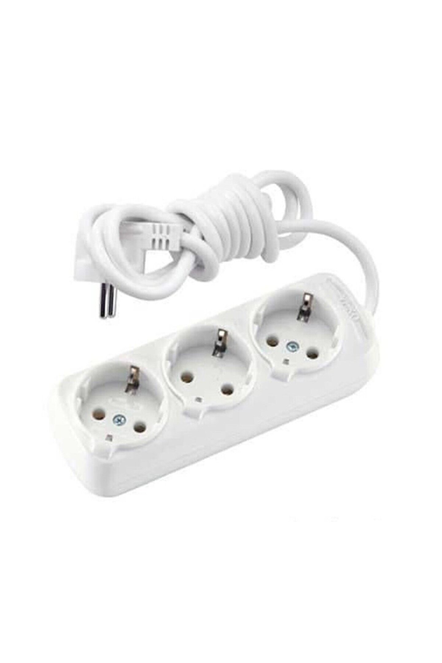 Grup Priz - 2 Metrelik Topraklı Uzatma 3'lü Priz, 2m Kablolu Fiş