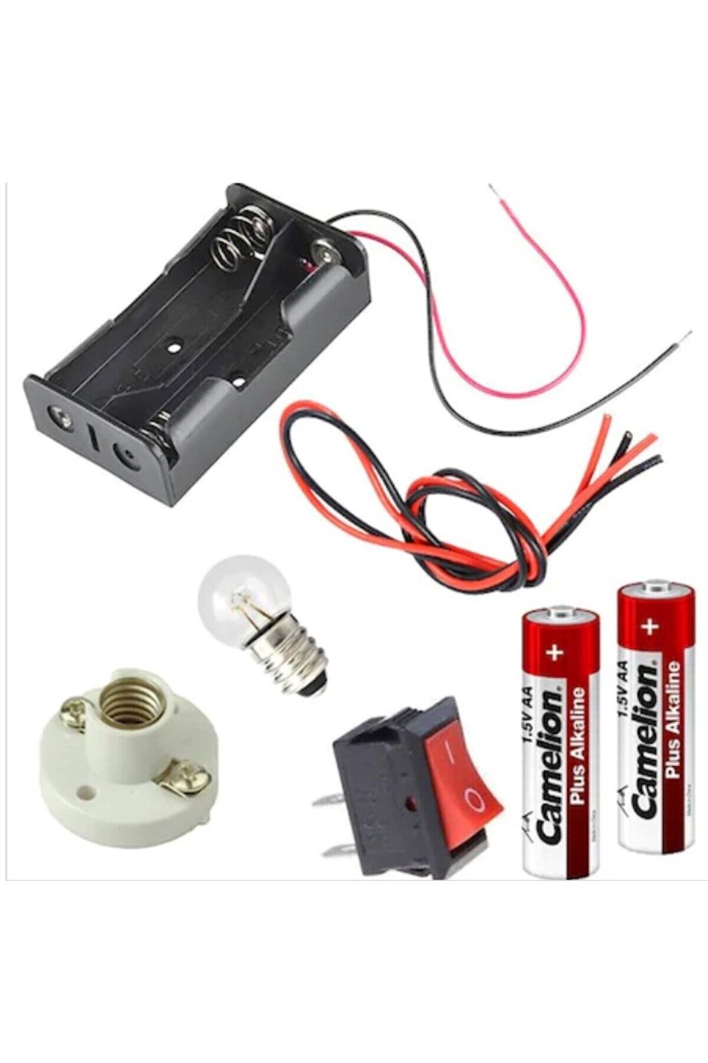 Okul Deney Seti - 2 Duy, Anahtar, Pil Yatağı, Lamba, Pil, Kablo Elektrik enerjisi günlük yaşamımızda vazgeçilmezimiz haline gelmiştir. Hayatımızın içerisinde yer alan bu enerji çeşidinin üretimi veya kullanımını, çocuklarımıza Milli Eğitim müfredatımızda yer alan kazanımlara uygun olarak hazırlanmış ve en etkili öğenmeyi sağlayacak şekilde tasarlanmış olan setlerimizle sunmaktayız. Farklı deney setlerimizin içerisinden çocuğunuzun seviye ve ihtiyacına uygun olanınıı seçerek elektriği eğlenceli hale getirebilirsiniz. Setlerimiz Fen bilimleri öğretmenlerimizin de ihtiyaç ve talepleri göz önünde bulundurularak hazırlanmıştır. Deney setimizin içeriği ile çocuklarımız basit elektrik devresinin kurulumunu somutlaştırarak öğrenmektedir. Eğitim - öğretim sürecinde yer alan saygın kuramlara göre de "Yaparak- Yaşayarak" öğrenmede birey en etkili ve kalıcı öğrenme içeriğini geliştirmektedir. Deney setlerimizin içeriğine yönelik olarak sizin de talep ettiğiniz içerikleri taleplerinize uygun olarak hazırlayıp gönderme imkanımız mevcuttur. Bunun için bize mesaj ya da telefon yoluyla ulaşmanız yeterlidir. Set içindekiler 1 Adet - 2li Pil Yatağı; 2 Adet - Pil; 1 Adet - Aç-Kapama Anahtarı; 1 Adet - Duy; 1 Adet - Mini Lamba; 2 Adet - Elektrik Kablosu;