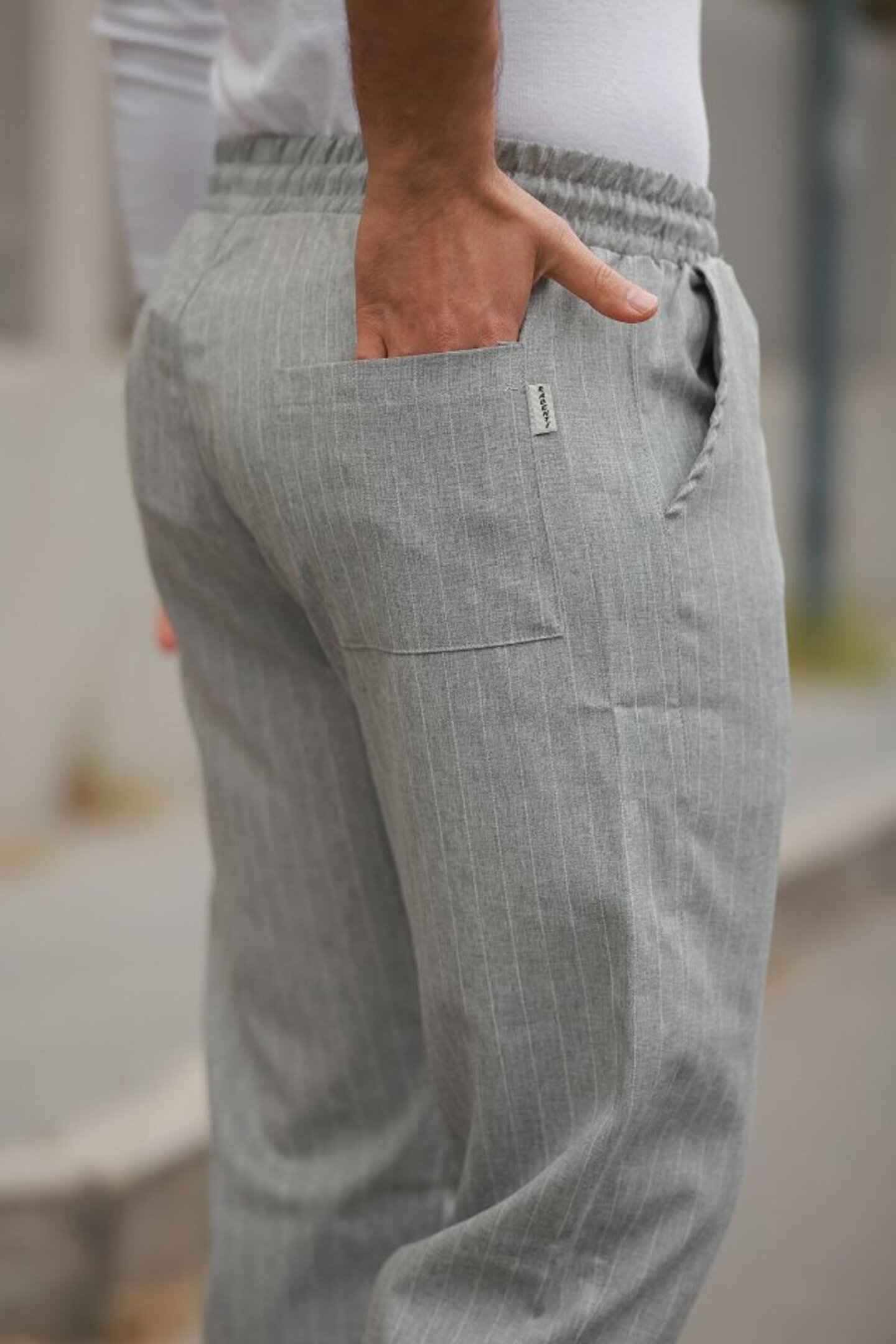 Emiray Store Gökyüzü Moda Erkek Beli Bağcıklı çizgili Pantolon