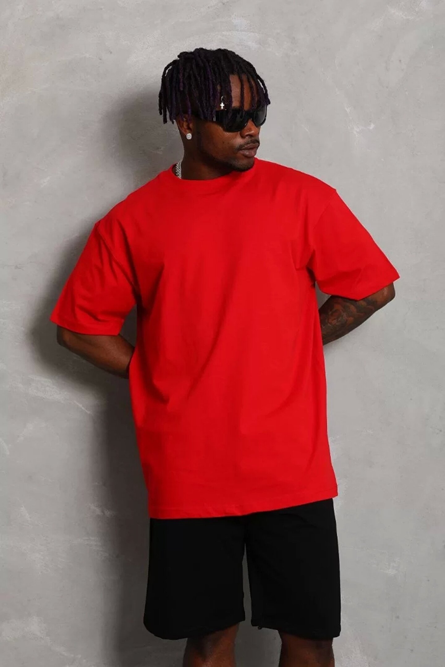 Unisex Oversize Düz Bisiklet Yaka T-Shirt - Kırmızı