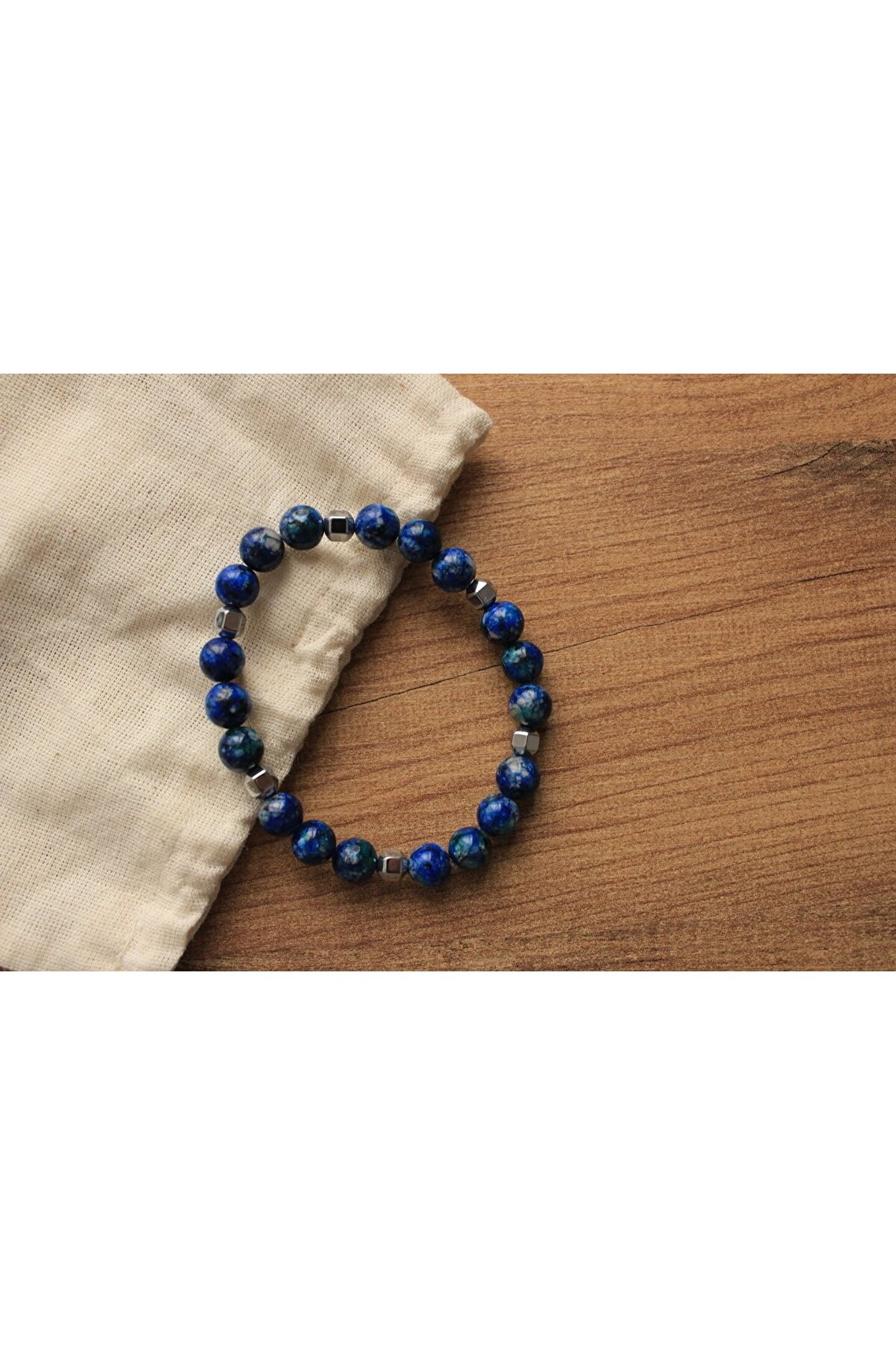 Doğal taş kullanımı sayesinde her bileklik benzersiz ve otantik bir görünüm sunar; Sodalit ve hematit gibi nadir bulunan minerallerden oluşan bileklik, şıklığınızı tamamlayacak zarif bir aksesuar seçeneği oluşturur; Doğal taşların eşsiz dokusu ve renkleri, bilekliğinize doğal bir estetik katarken, aynı zamanda dayanıklılığı ile uzun süreli kullanım vaat eder; Hem şık hem de rahat bir kullanım sunan bu bileklik, günlük kombinlerinizde kolayca uyum sağlar ve stilinizi öne çıkarır;