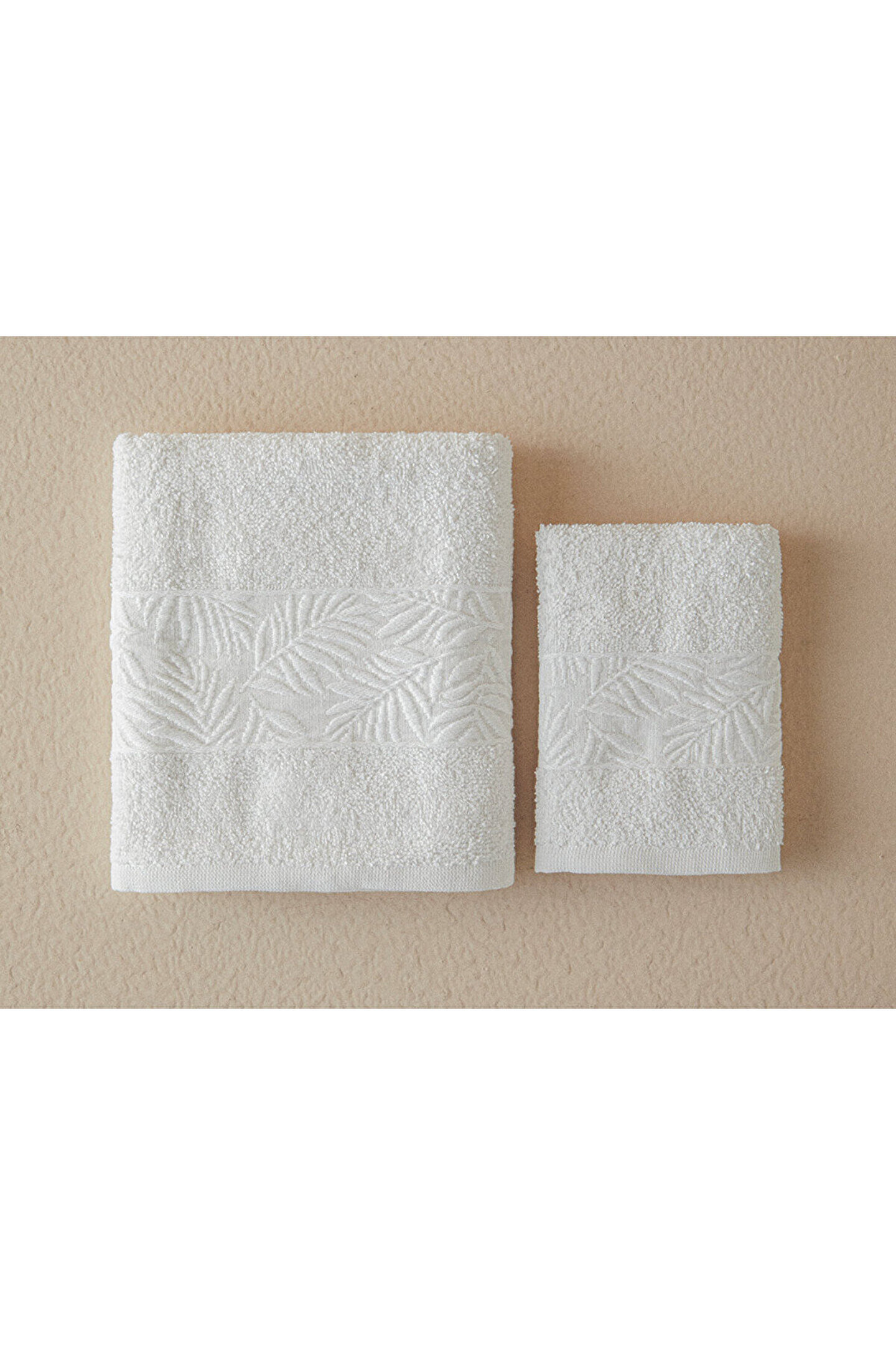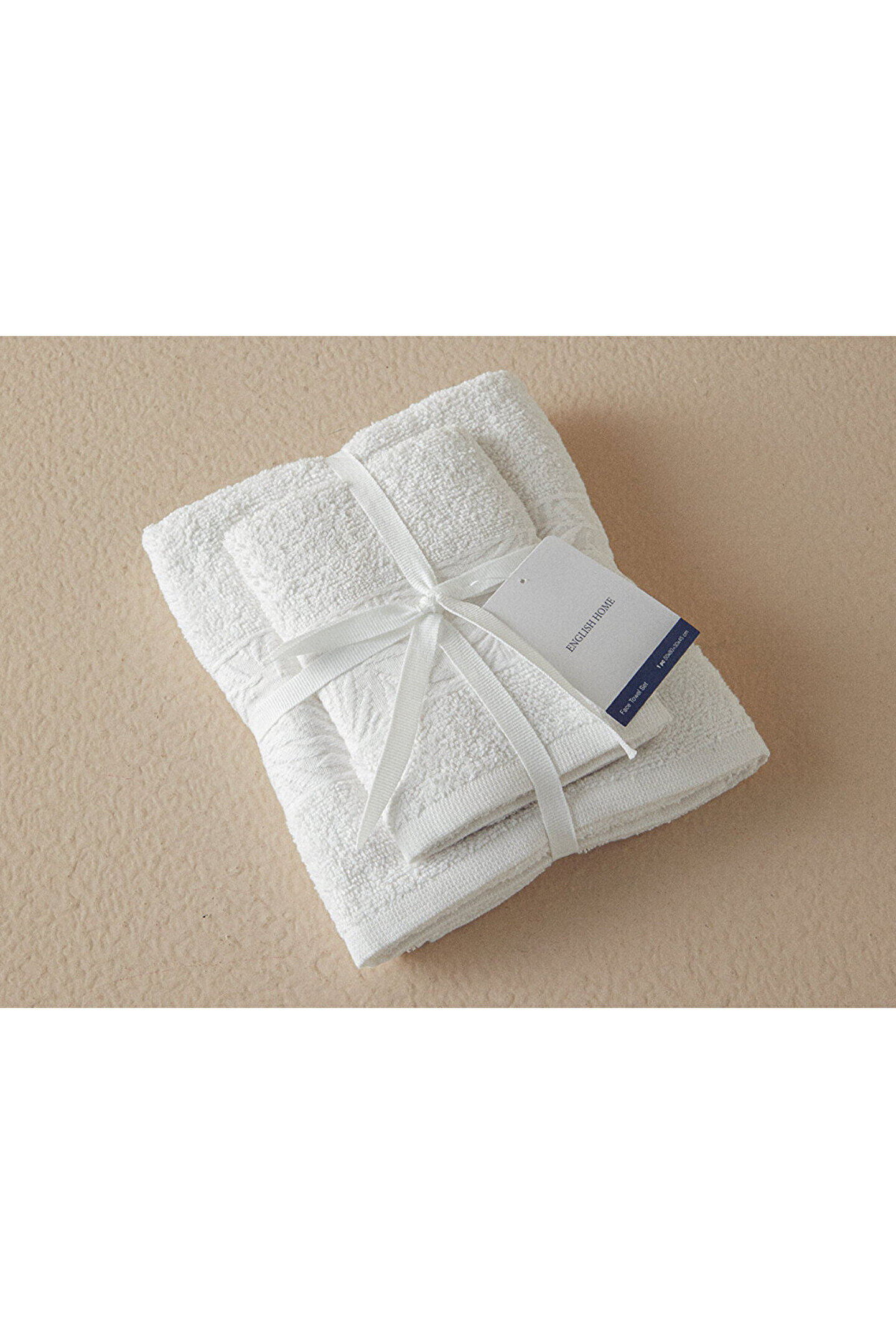 English Home Branch Pamuklu Jakarlı Yüz Havlusu Seti 50x80+30x45 Cm Ekru