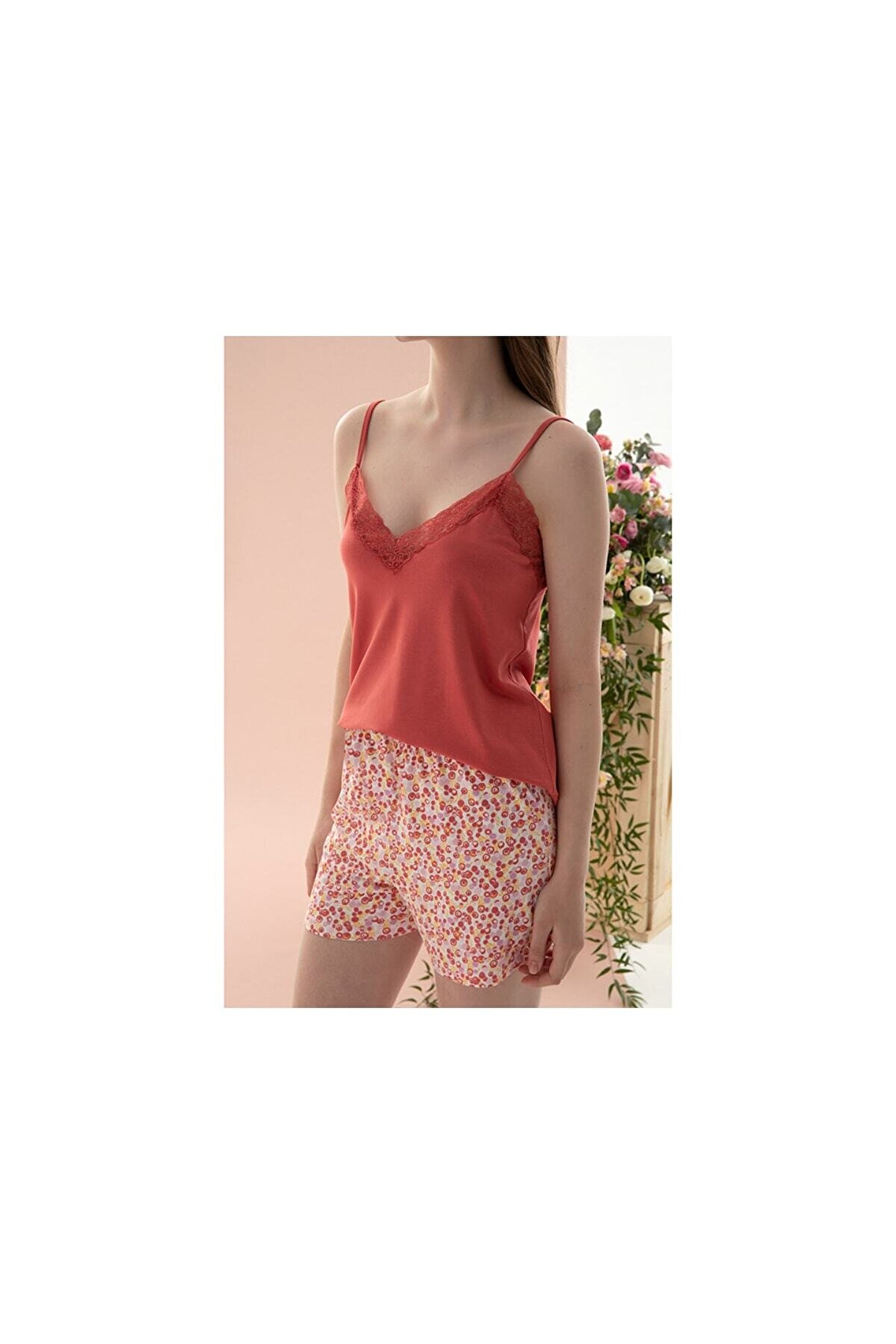 %95 viskoz ve %5 elastan içeriğiyle yumuşak dokunuşu ve esnek yapısı sayesinde konforlu bir uyku deneyimi sunar; Örme kumaş tipi, dayanıklılığı artırırken cildinize nazik bir dokunuş sağlar; Pamuklu materyal tercihi ile cilt dostu bir kullanım sunar ve nefes alabilir özelliğiyle terlemeyi minimize eder; Type 3 yıkama talimatına uygun şekilde kolayca temizlenebilir; böylece pijama takımınız uzun süre ilk günkü gibi kalır;
