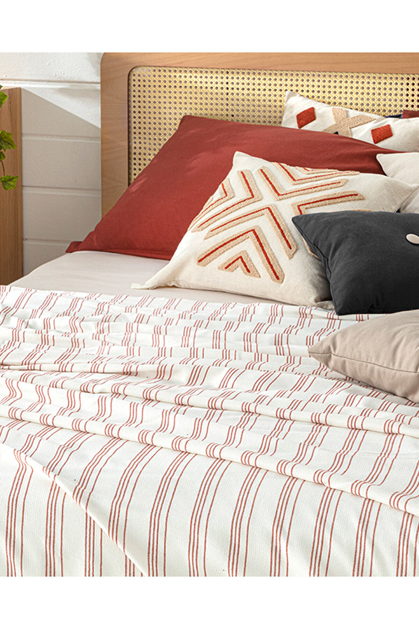 English Home Fine Lines Ipliği Boyalı Viskon Çift Kişilik Pike Mercan