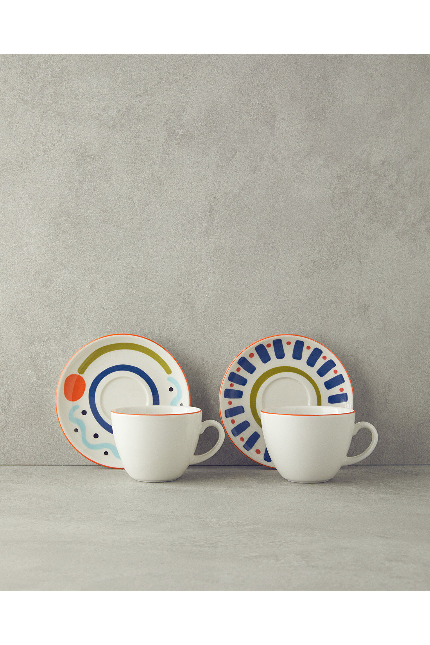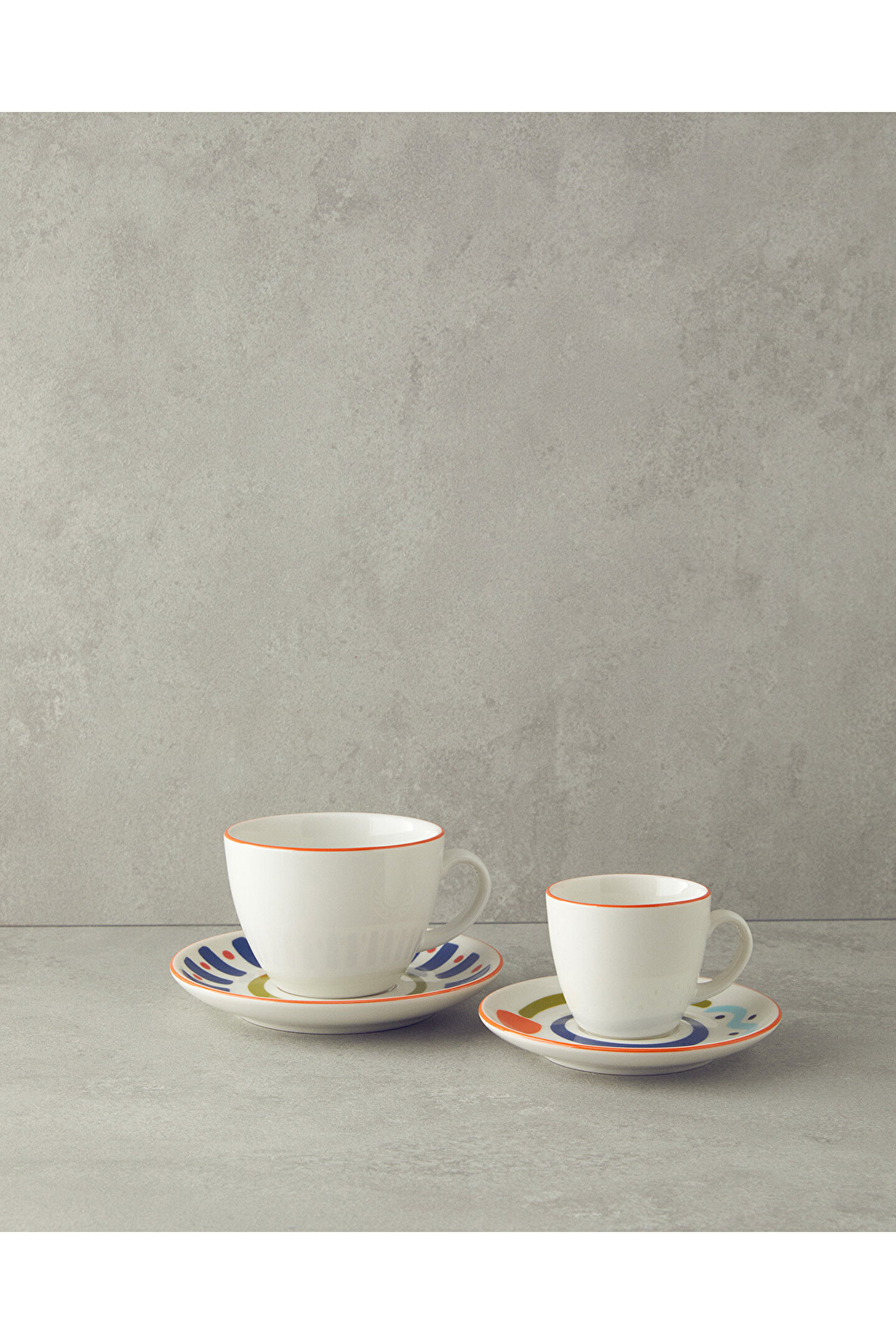 English Home Mixed Lines Porselen 4 Parça 2 Kişilik Fincan Takımı Renkli