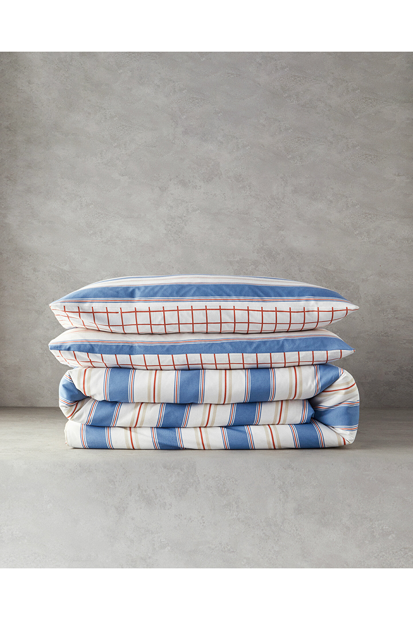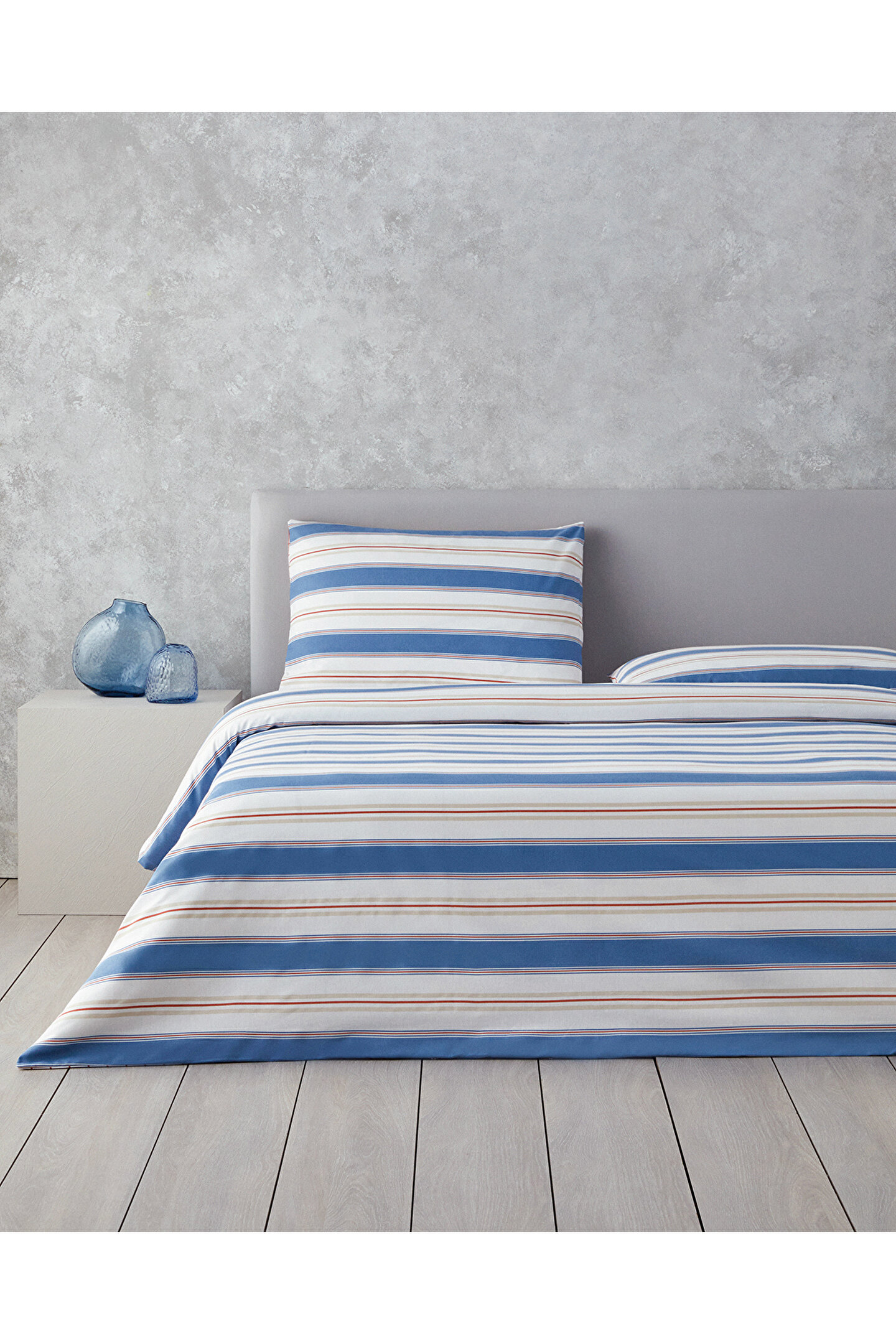 Yumuşak dokunuşuyla konforlu bir uyku deneyimi sunan pamuklu kumaştan üretilmiştir.; Mavinin huzur veren tonlarıyla modern ve şık çizgili deseniyle odanıza estetik bir görünüm kazandırır.; Çift kişilik boyutuyla geniş ve ferah bir uyum sağlar, çiftler için idealdir.; Yüksek kaliteli malzemeler kullanılarak üretilmiş olup uzun süreli kullanım için dayanıklıdır.; Kolay bakım avantajıyla pratik kullanım sunar; leke tutmaz özelliği sayesinde temizliği kolaydır.;