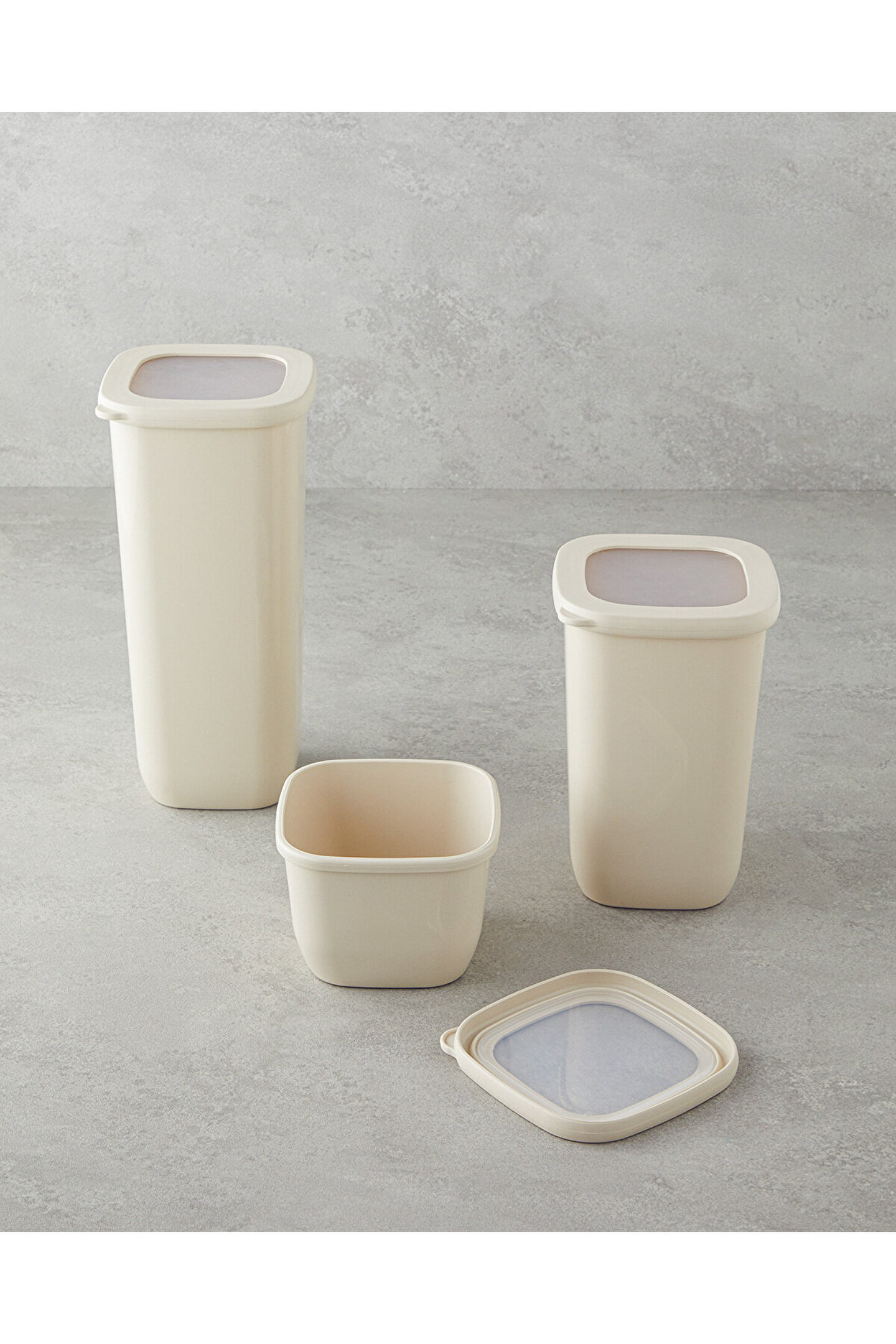 English Home Novia Plastik 3lü Kavanoz 550 ml-1200 ml-1700 ml Krem