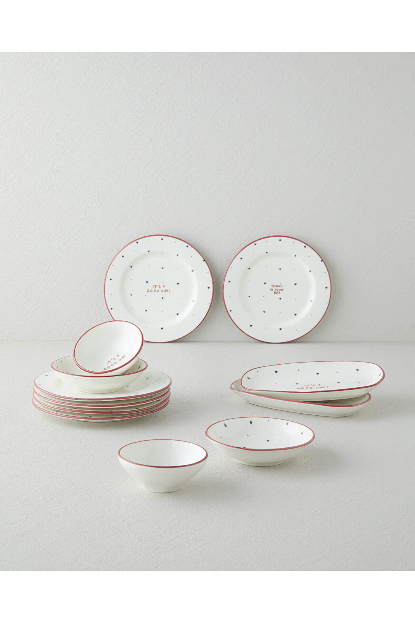 English Home Romance Porselen Kahvaltı Takımı 12 Parça 6 Kişilik Kırmızı-Siyah