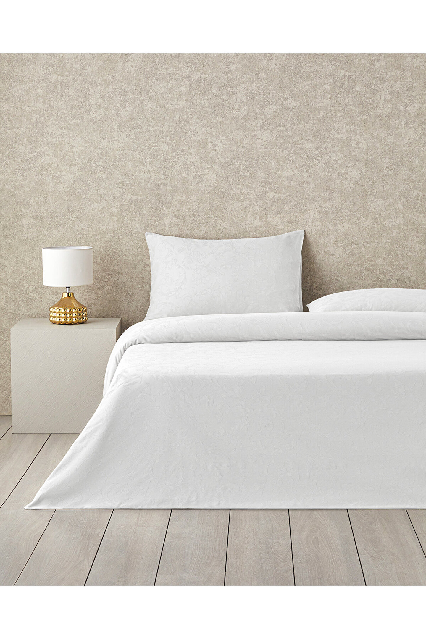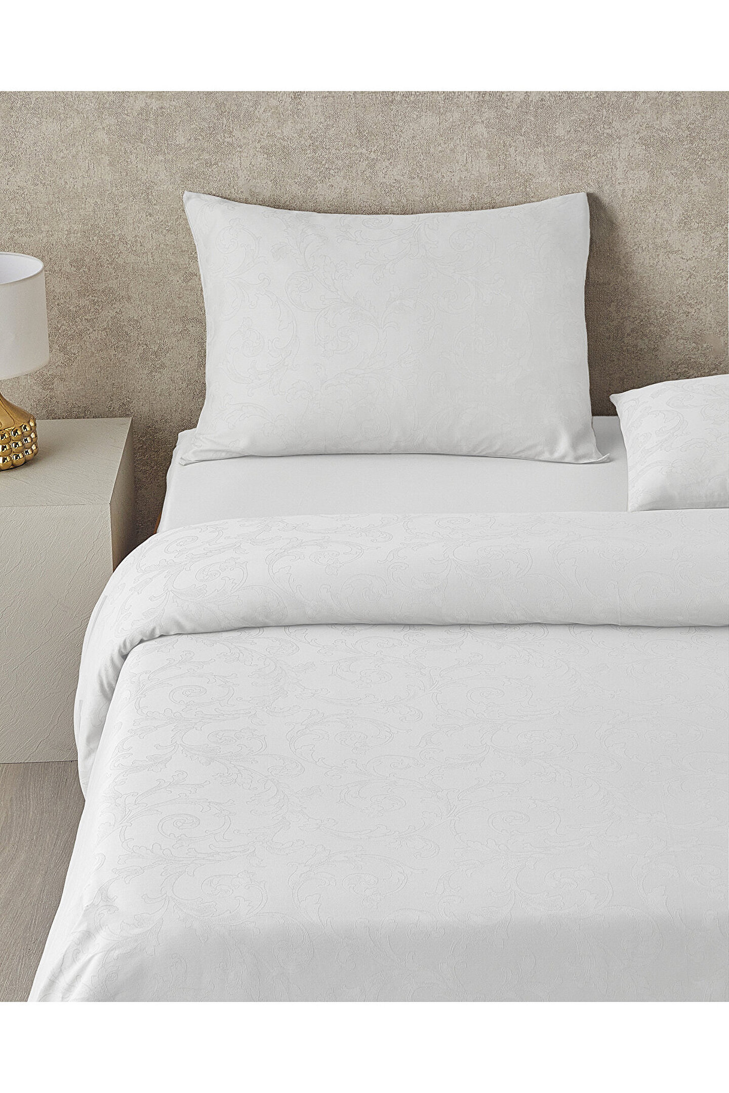 English Home Royal Scroll Jakarlı Pamuk Saten King Size Nevresim Takımı 240x220 cm Beyaz