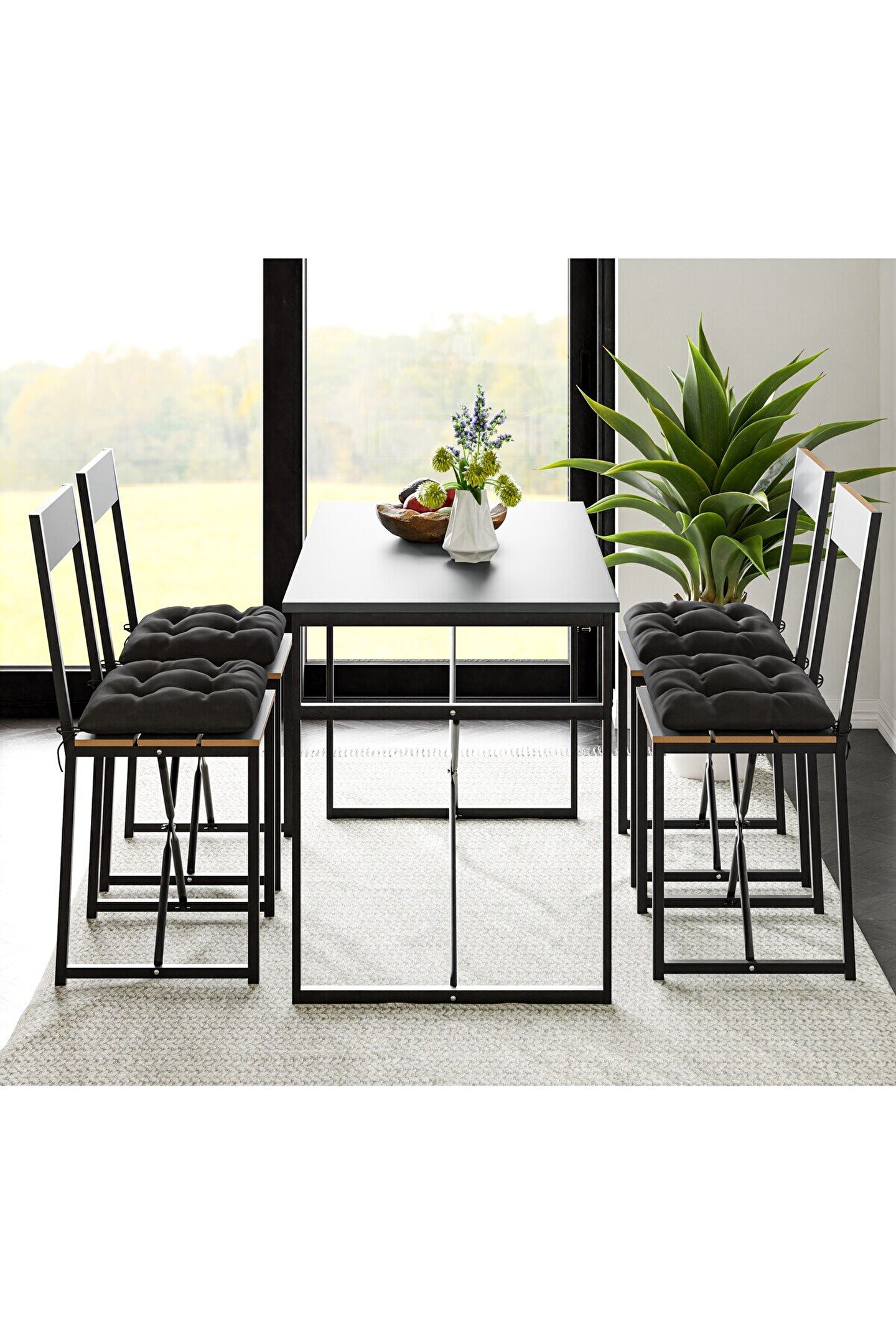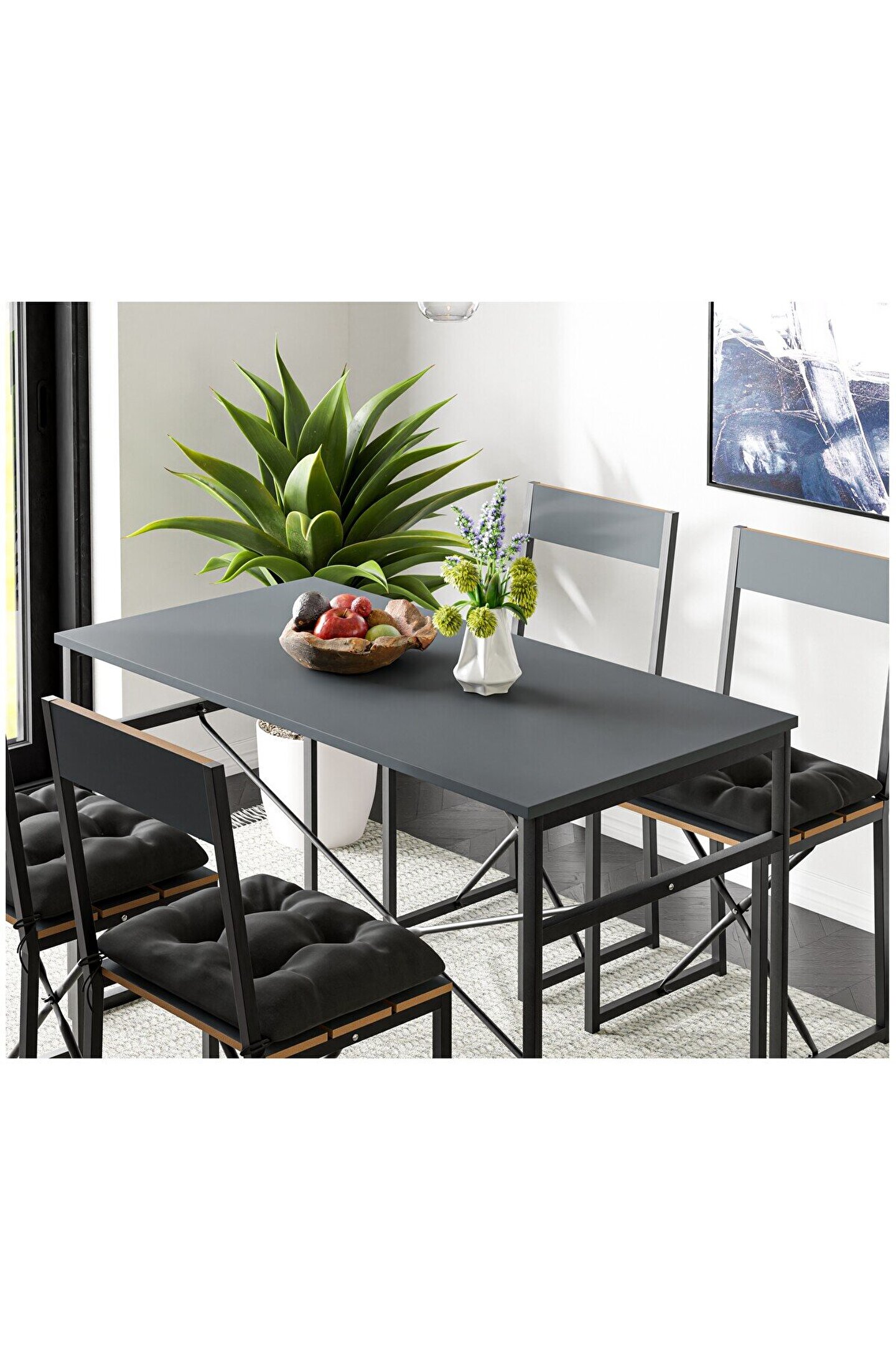 Eğlence ve aile yemekleri için iyi bir seçim olan masa takımı, ailenizle ve arkadaşlarınızla keyifli zamanlar geçirmenize olanak tanır. Yemek saatinde aileyi ve arkadaşları bir araya toplayan masa, yemek mekanına anlam ve ruh katar. Ürün, hem boyutu hem de tasarımı bakımından tüm iç mekanlarda uyumludur. Özellikle de yemek odaları ve mutfaklar için uygun olan ürün, isteğe göre iş yerlerinde de gönül rahatlığı ile kullanılabilir. İstek ve ihtiyaçları karşılayan