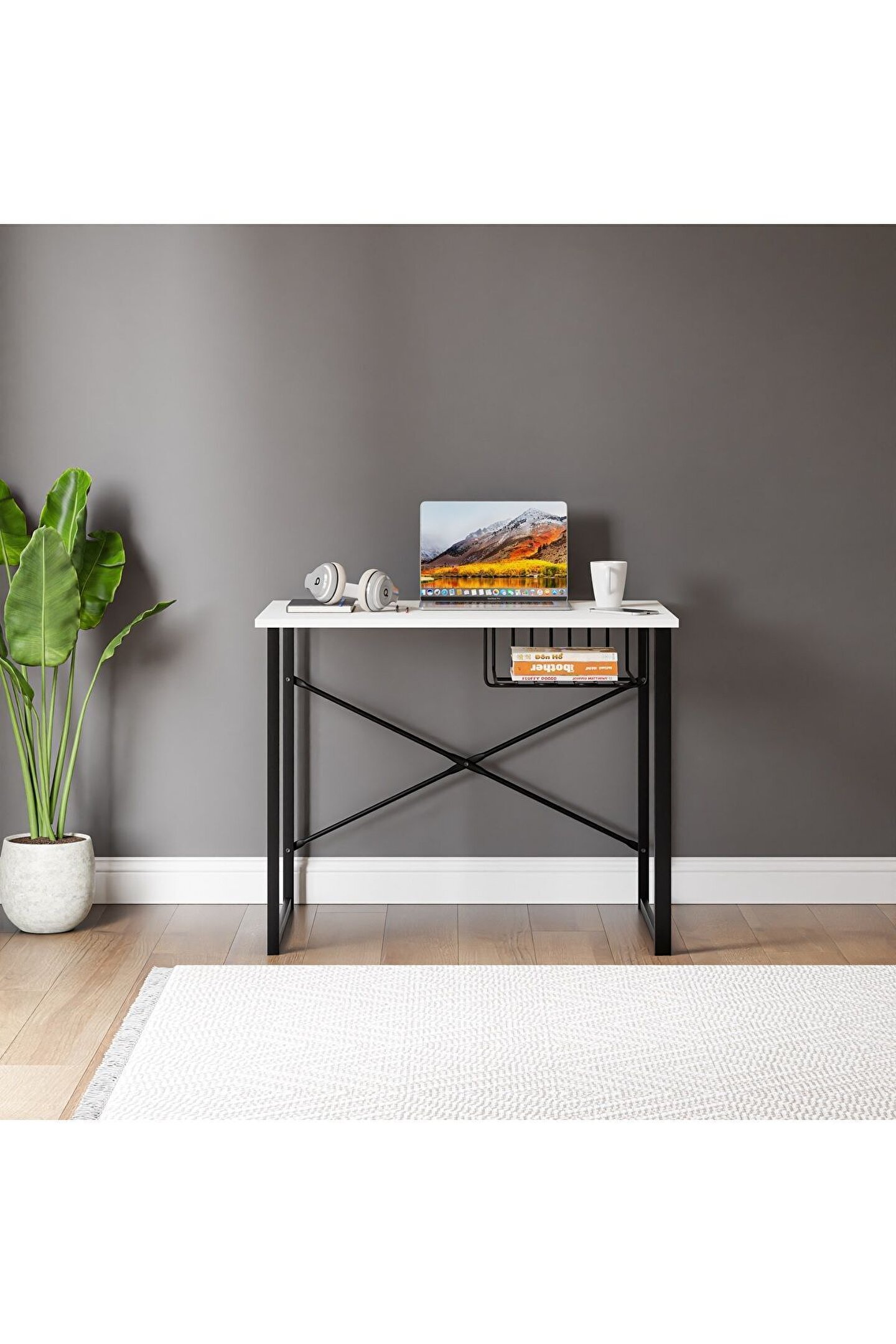 Dayanıklı metal malzeme kullanımı sayesinde uzun ömürlü ve sağlam bir yapı sunar; Beyaz renk seçeneğiyle modern ve şık bir görünüm sağlar, ofis veya çalışma odanızın dekorasyonuna kolayca uyum sağlar; Raflı tasarımı ile kitaplarınız, notlarınız ve diğer eşyalarınız için ekstra depolama alanı sunar, çalışma alanınızı düzenli tutar; Geniş yüzeyi sayesinde laptopunuz için rahat bir çalışma alanı oluştururken, aynı zamanda ekstra raflarla diğer ihtiyaçlarınıza da cevap verir;